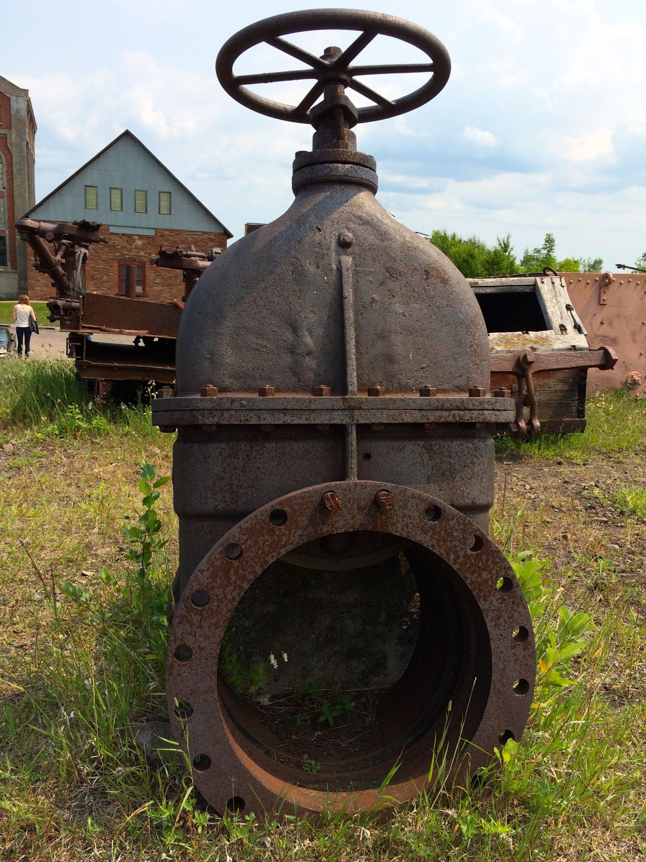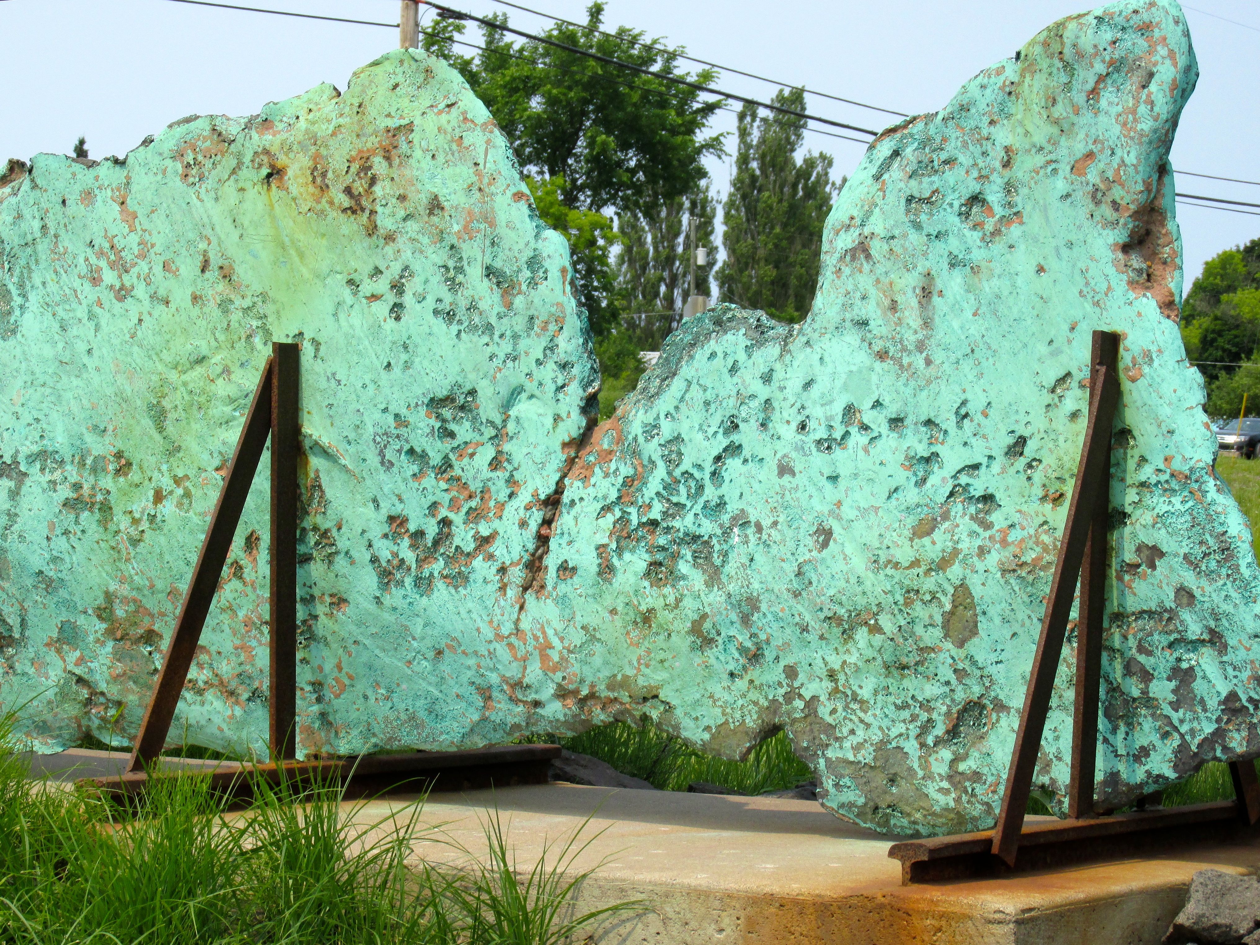 Carole Frances Lung was one of the artists in residence at the Kohler factory. This is a piece based on the overalls they workers wore when they were produced in-house. From what I remember, she wove the material and then sewed the uniform. Those are the pattern pieces used to cut the material. They are made of iron (I think) and have handles on them for moving them around. I was fascinated.