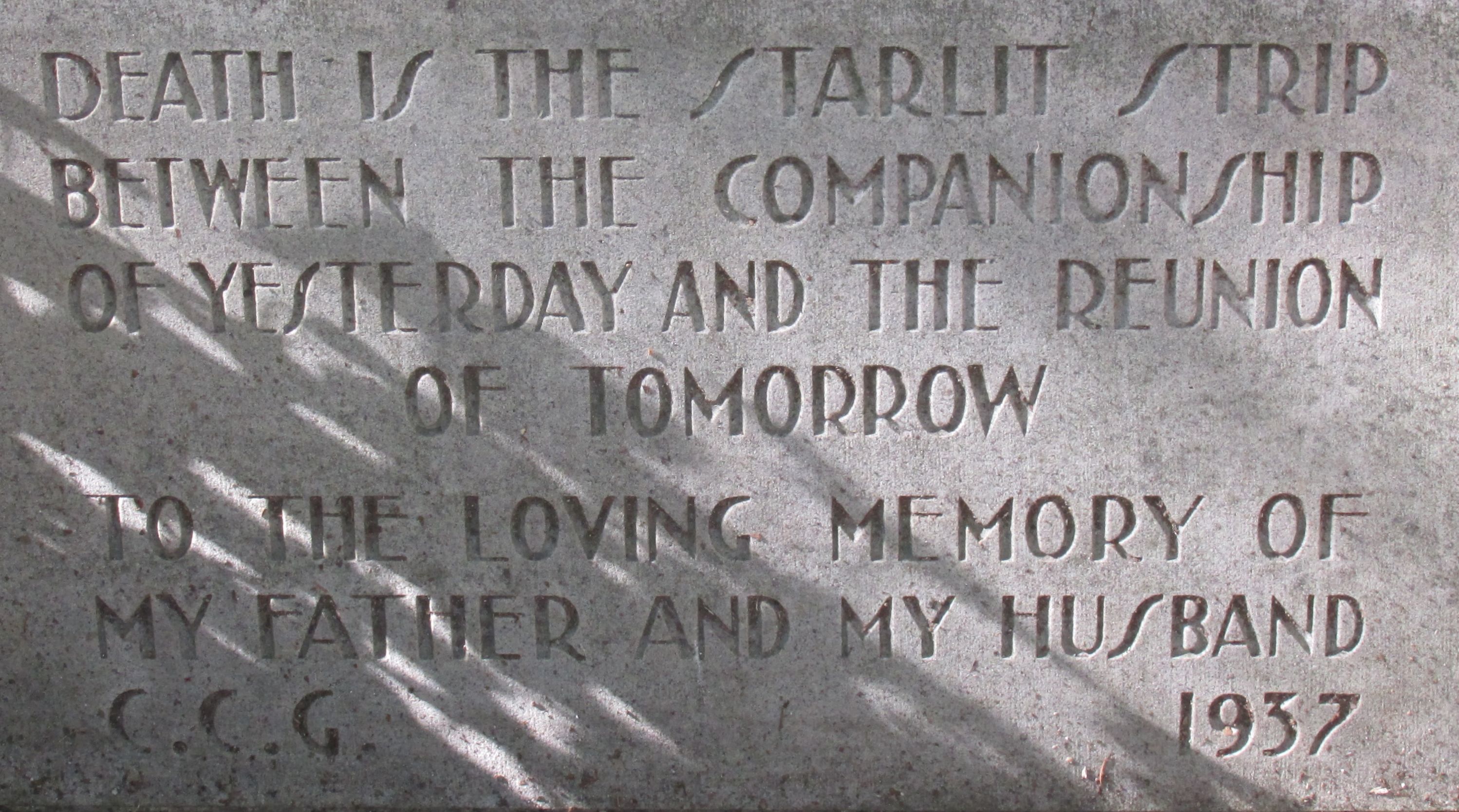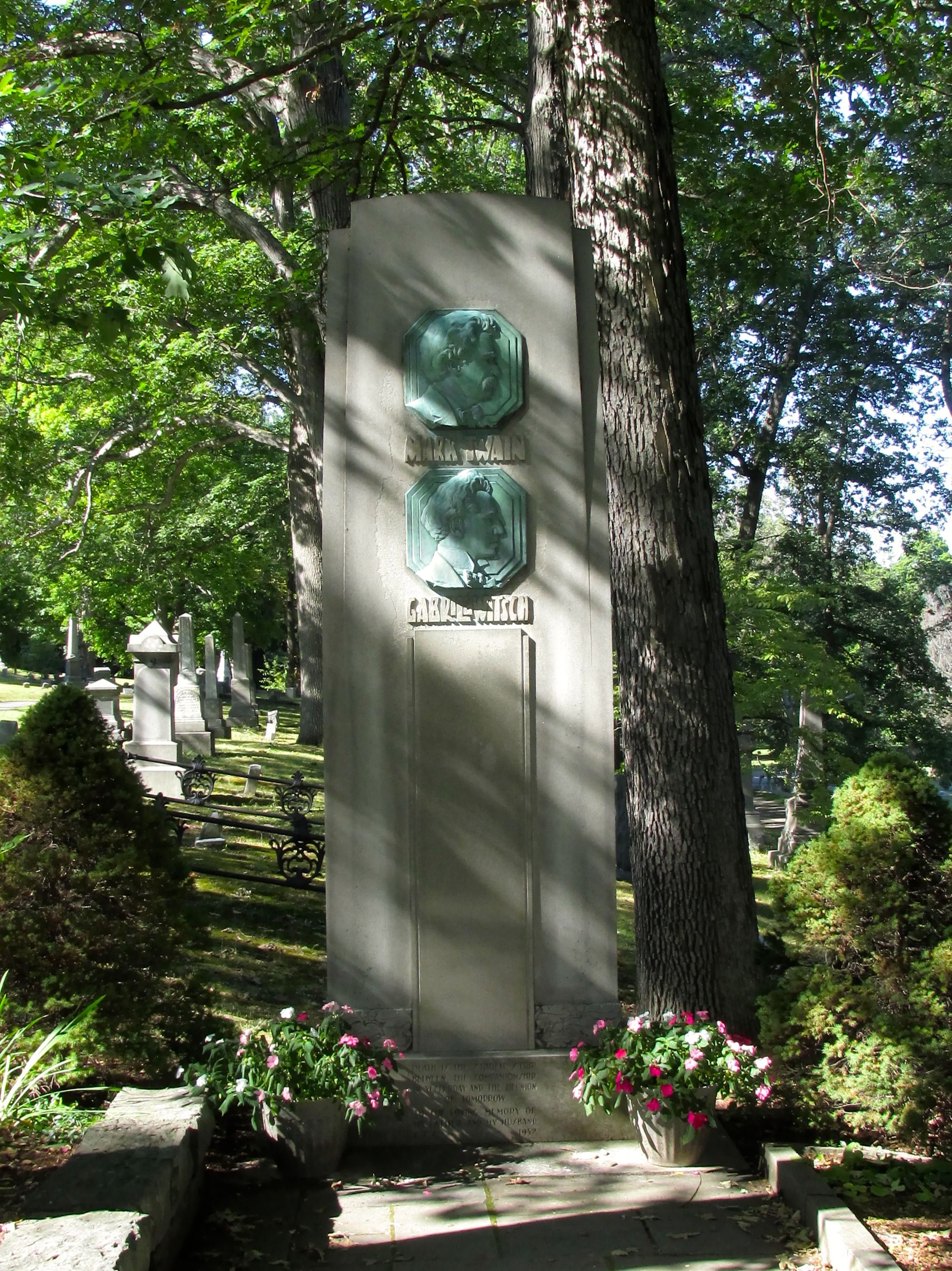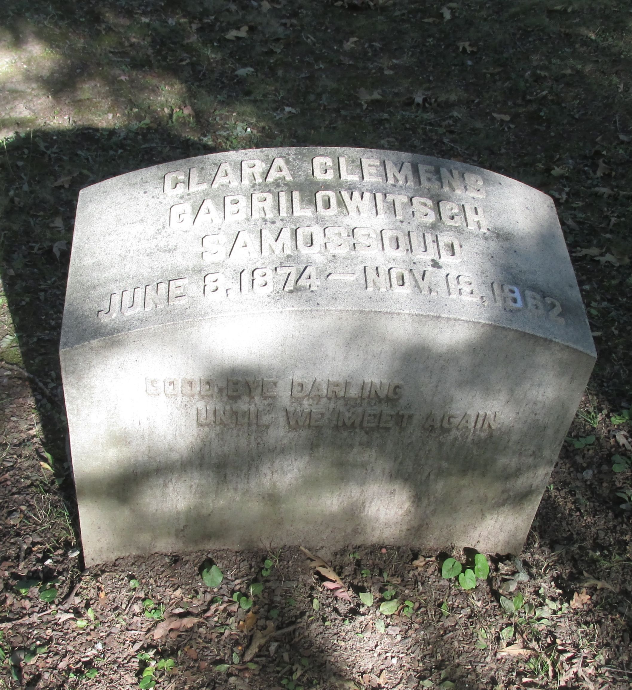 The lower bronze portrait on Mark Twain’s marker is his son-in-law, Russian pianist Ossip Gabrilowitsch. He must have had an awfully high opinion of himself, as he asked to be buried at Mark Twain’s feet. He died in 1936, and Mark Twain’s daughter, Clara, agreed with the request. She added a poem to both her father and her husband at the bottom of the memorial.