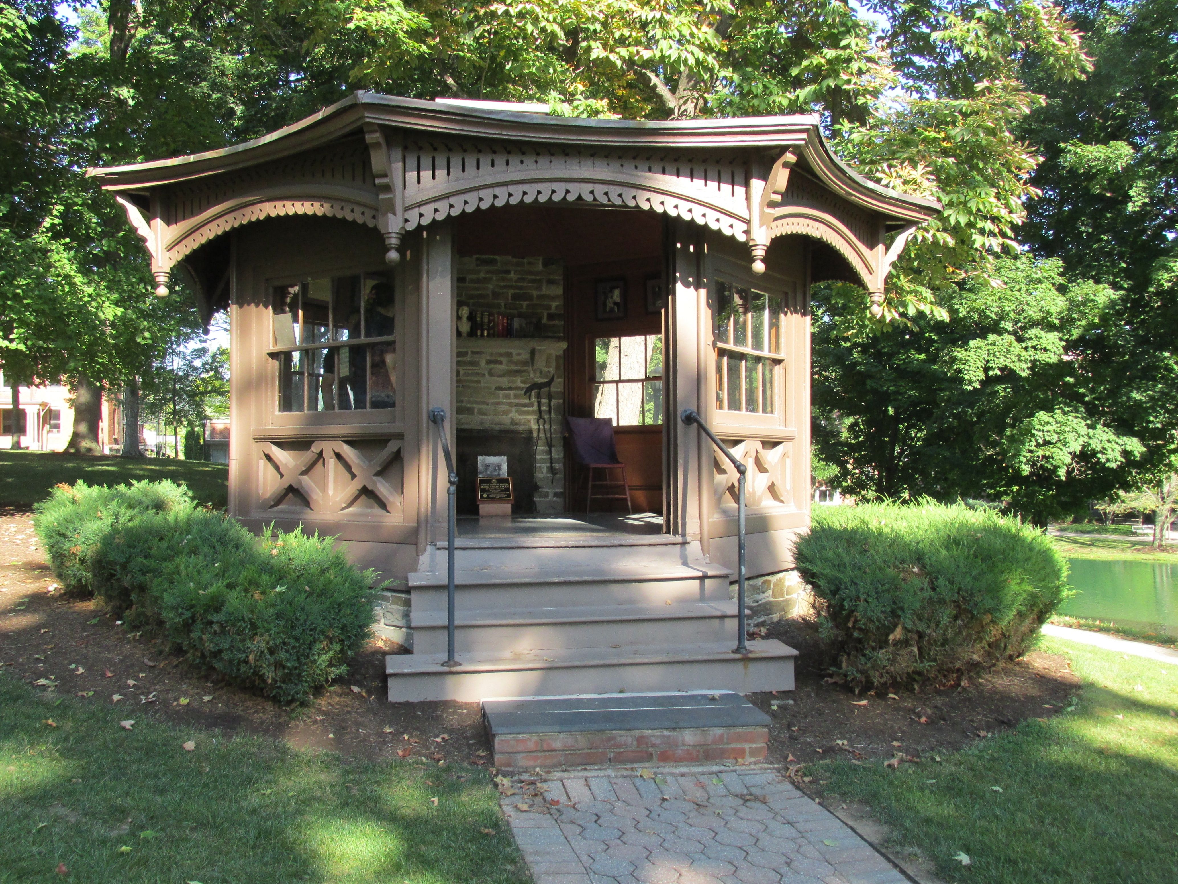 Mark Twain and his family spent summers in Elmira with his sister-in-law’s family. She had this retreat built on the hill above her house so that he could concentrate on his writing. In this little building, he worked on The Adventures of Tom Sawyer, The Adventures of Huckleberry Finn and A Connecticut Yankee in King Arthur’s Court, among other works.