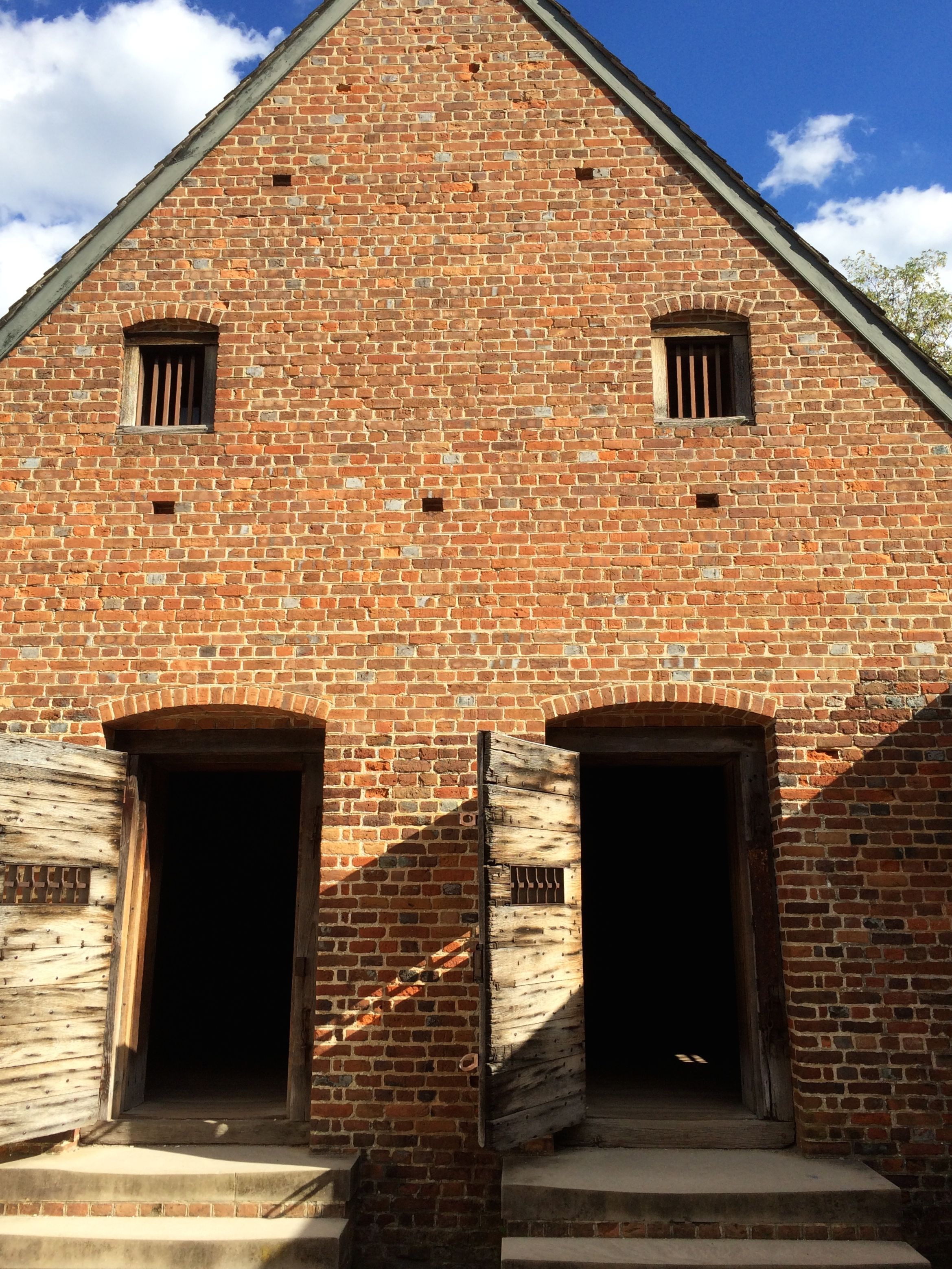 The building was constructed using the Flemish bond. This is when they alternate the headers (short sides) and stretchers (long sides). This building ups the ante by alternating the colors of the bricks as well.
