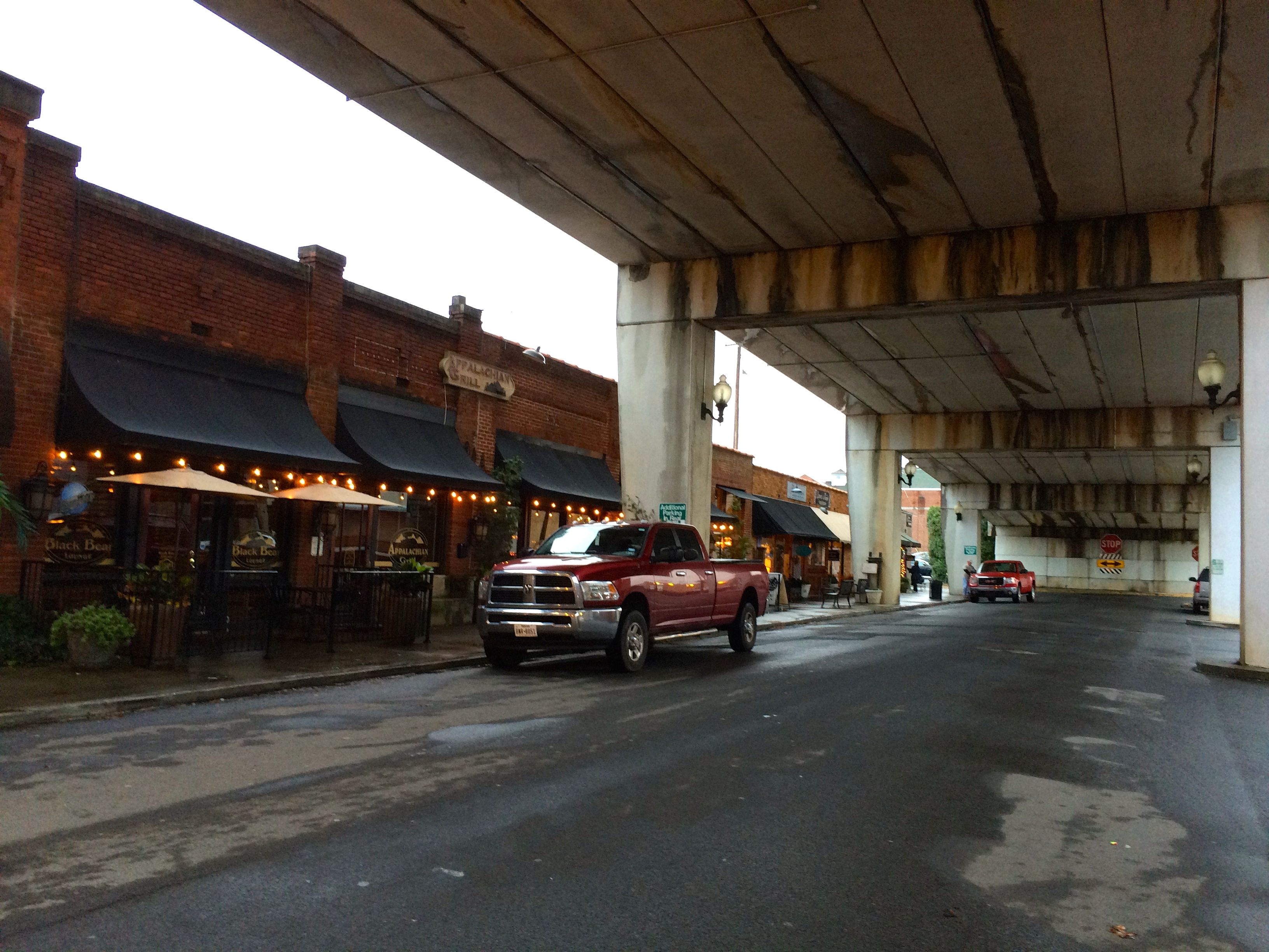 I got my washing taking care of and then checked my phone for places to eat. Appalachian Grill got some excellent reviews, so I decided to head there. I put the address in the phone and followed the twists and turns. I was on an overpass when the voice in the phone told me that I had arrived. Uh, the road was a good ways up in the air, so I knew that there was something wrong.