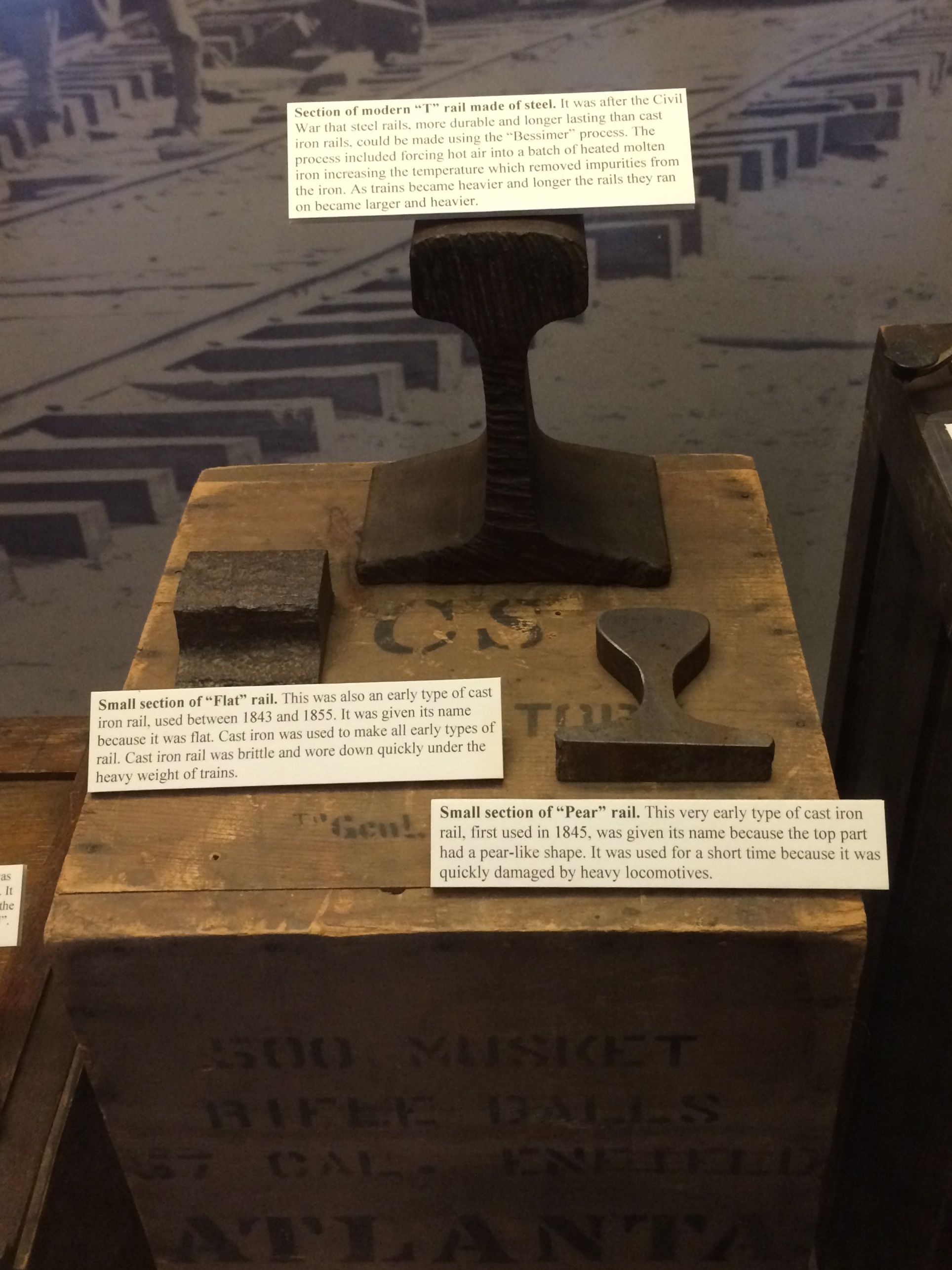 There were also some samples of the different kinds of rails that were in use.
