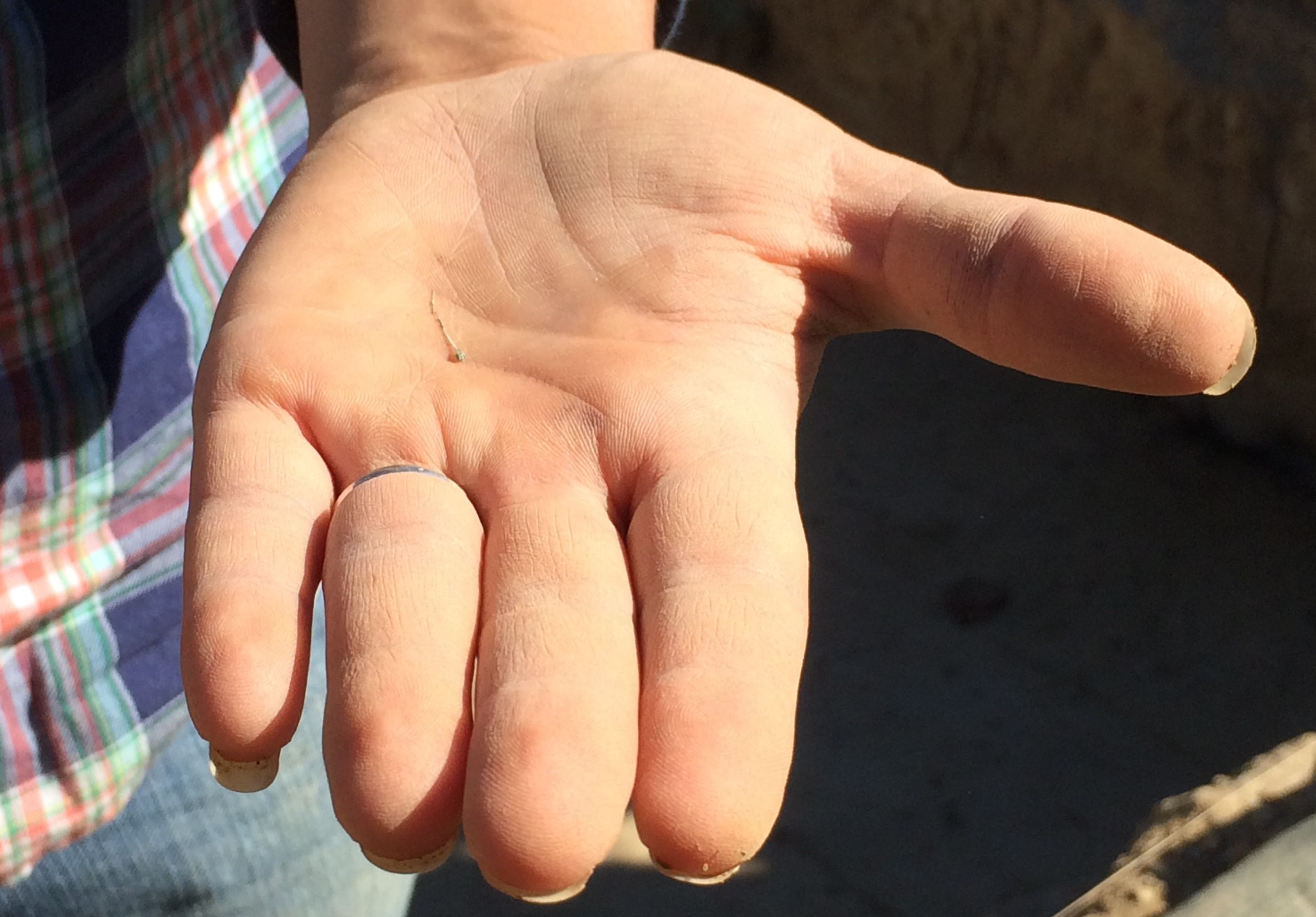 She had just discovered a brass pin. This actually counted as two artifacts, as it was broken into two pieces.