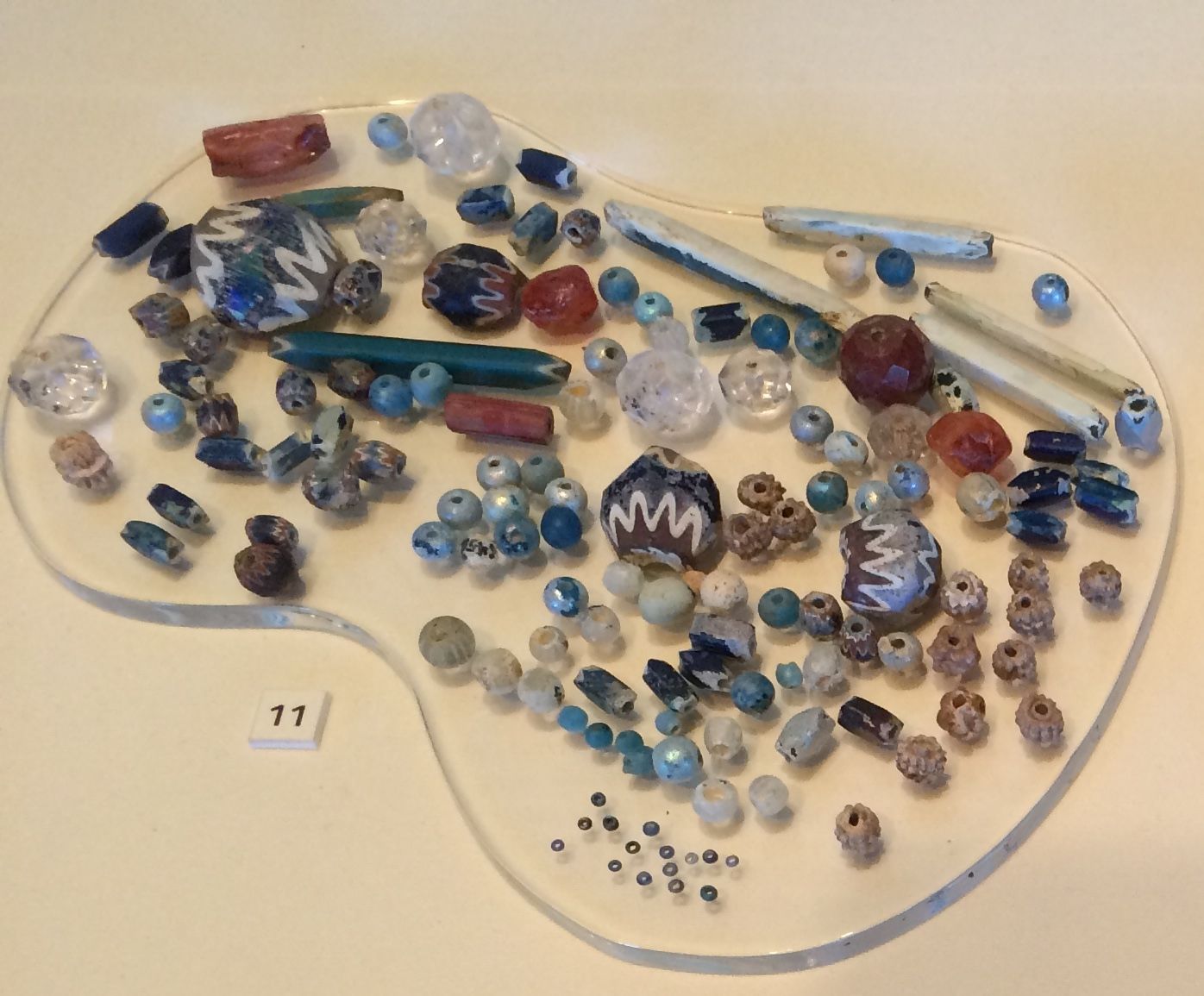 There were signs up inside the Archaearium prohibiting photography. I did my best, but I just couldn’t help myself. I had to take a few. The first one I snapped was the skull and reconstruction of Jane. Then, I just had to get a shot of some beads that were brought in as trade goods.