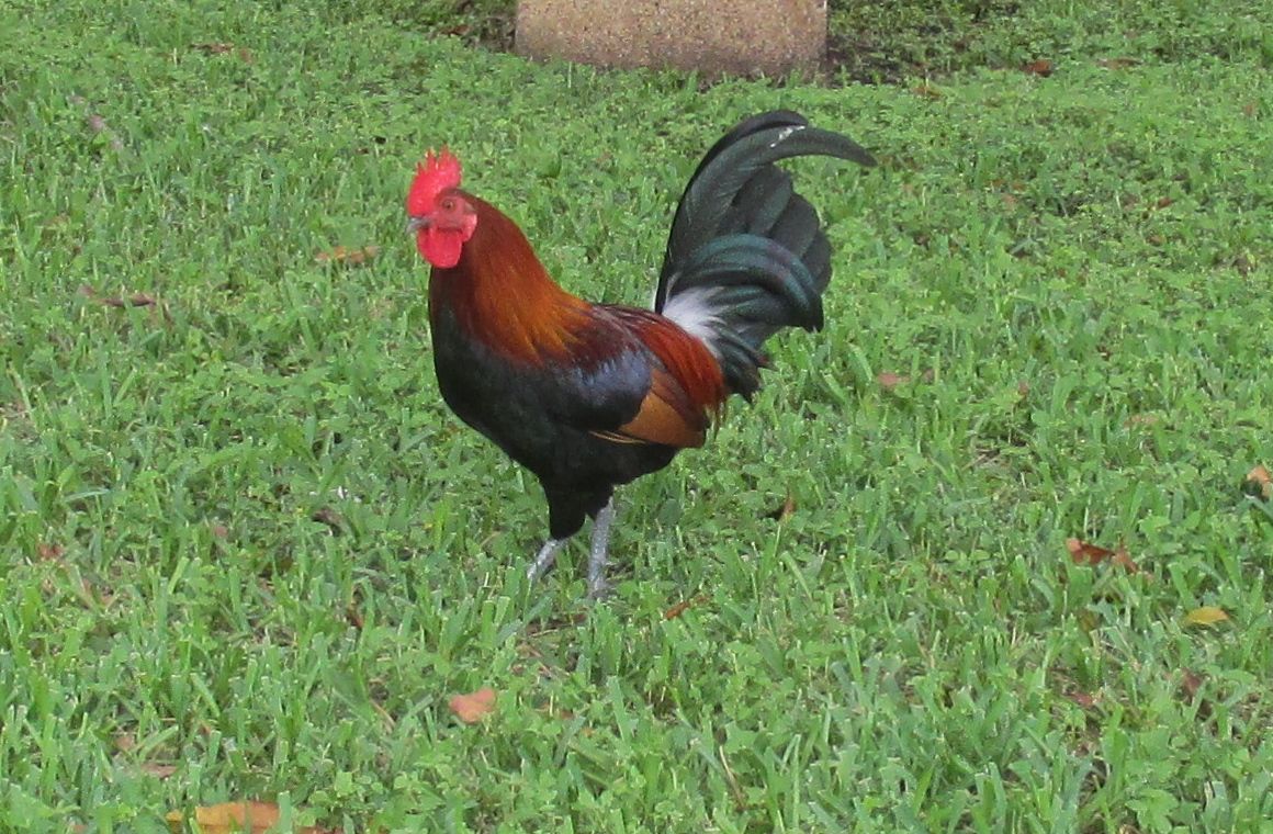 The story I was told was that when cock fighting was outlawed, the people were told to get rid of the birds. They just released them and they live a feral life. I was also told that they are protected by law. Theodore Roosevelt established Key West as a bird sanctuary, so now they just roam around at will and no one can touch them under penalty of law.