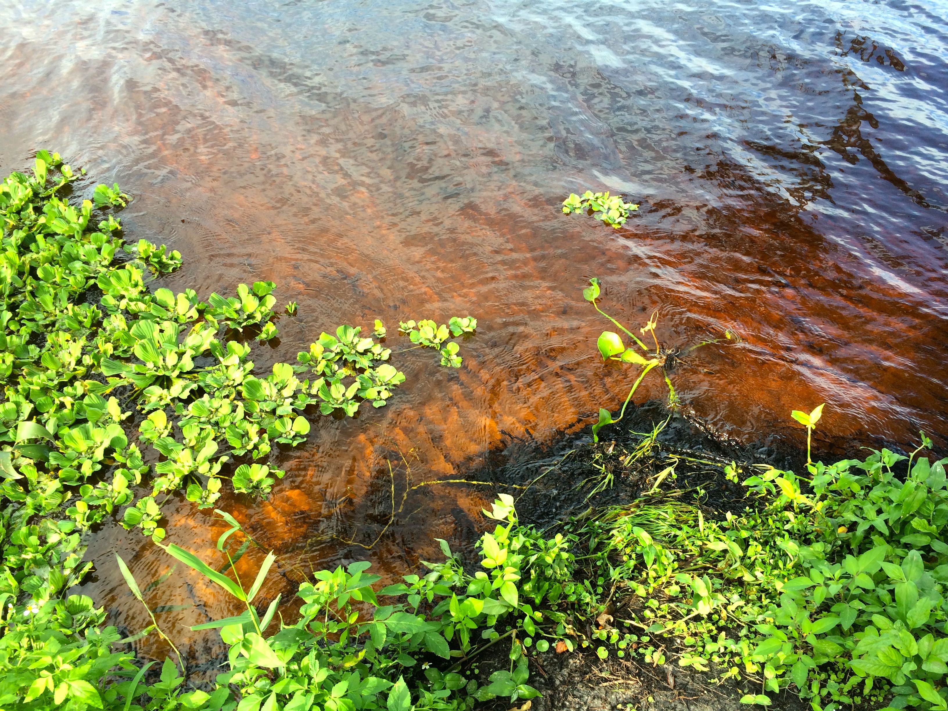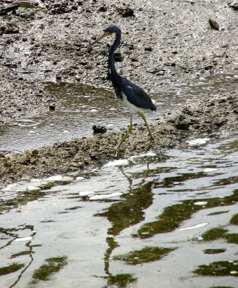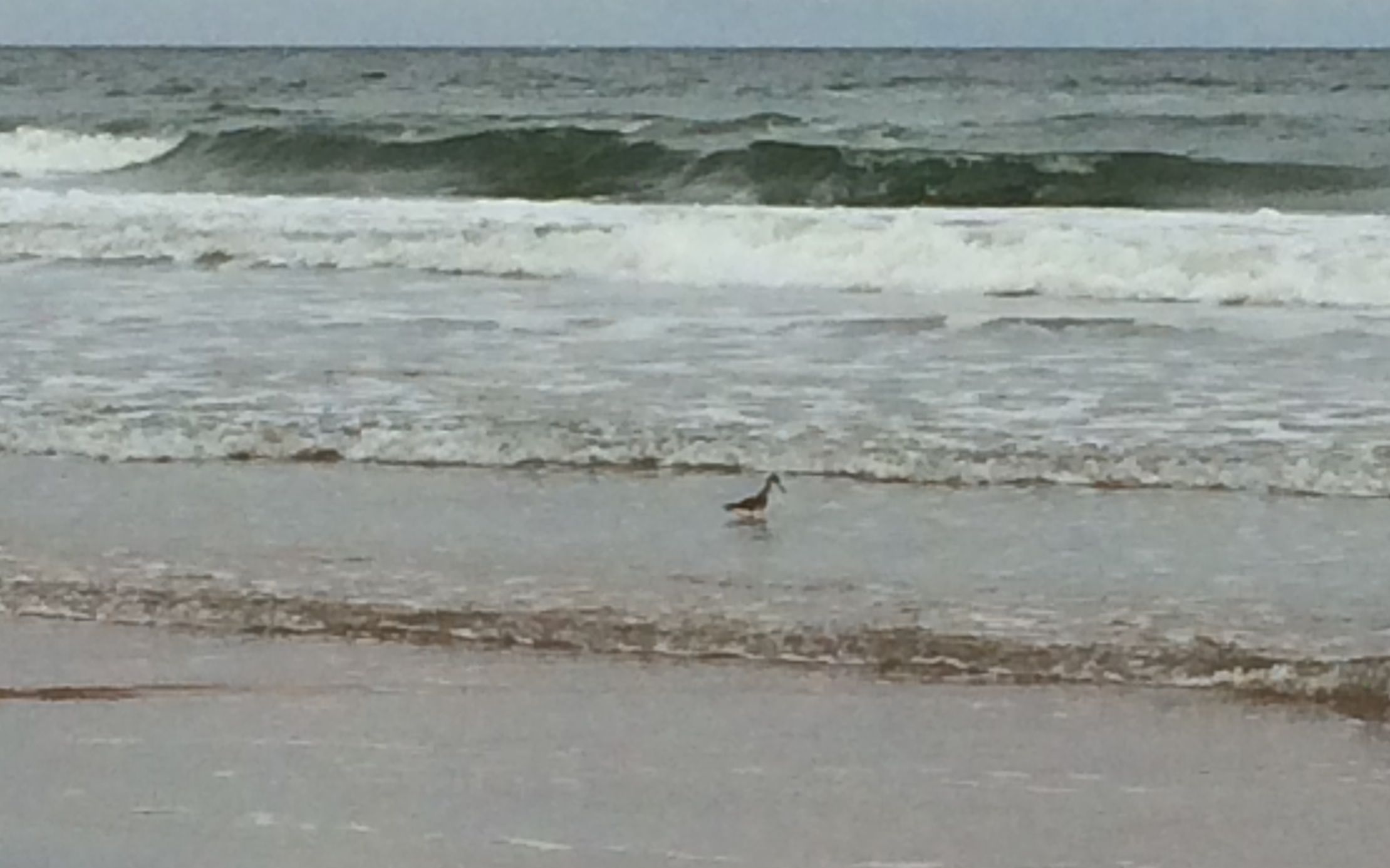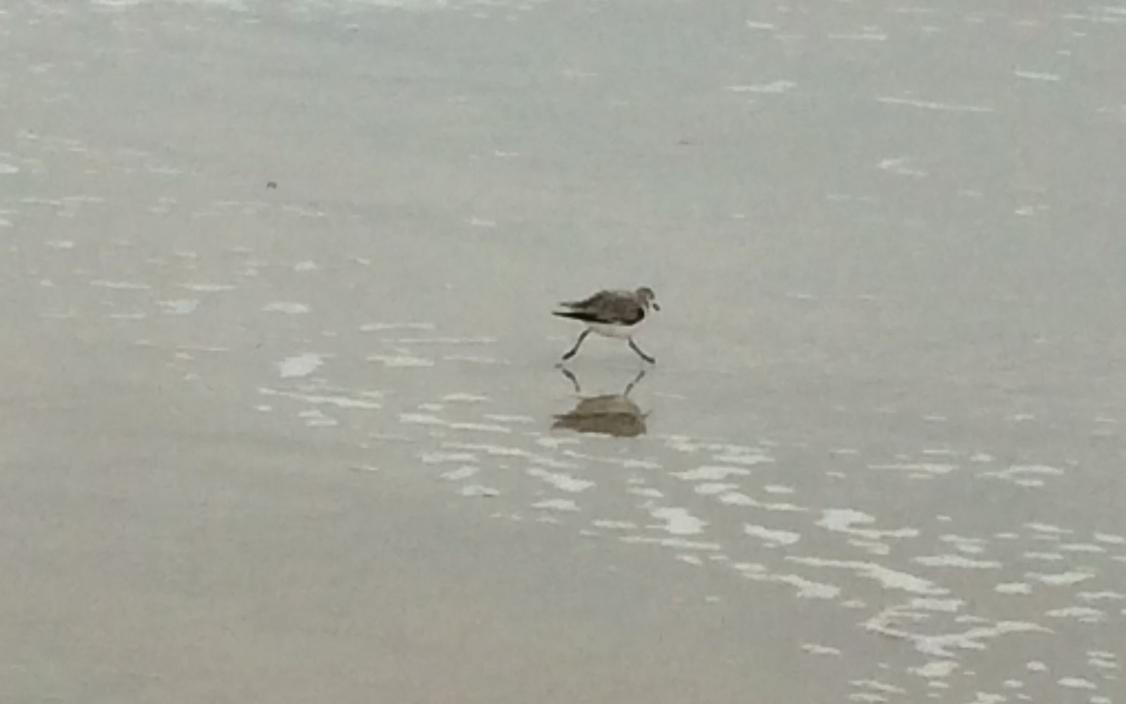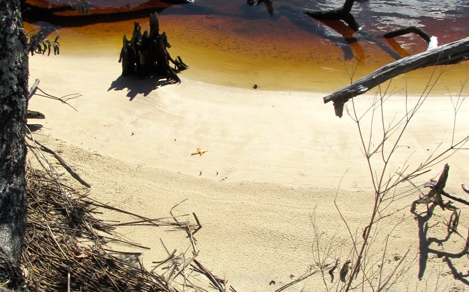 Once again, the brown water. This must be a Florida thing. Also, if you look carefully, you can see the tide line in the sand. It rained fiercely overnight. The rough looking sand is stippled by the rain. Tide must have been high when it was raining, so that the water protected the sand near the river from getting marked.