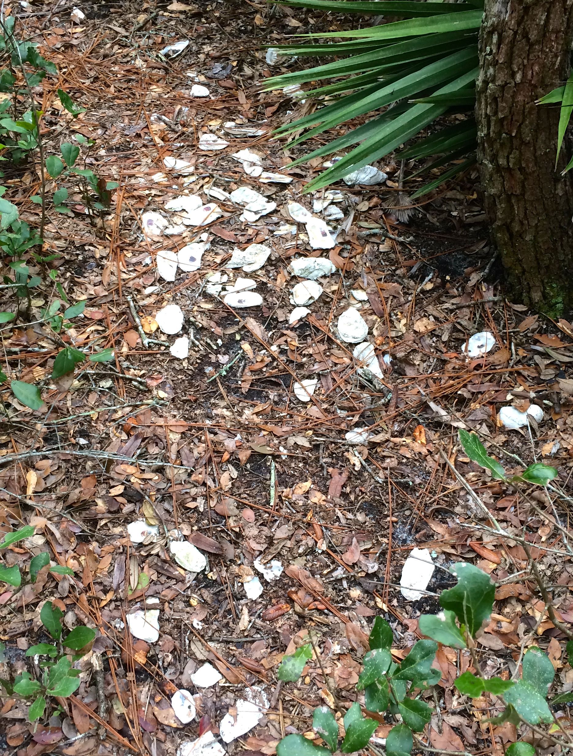 The first interesting thing I saw was this collection of shells off to the side of a path. I wondered what this might be. I figured an animal – or group of animals – must have left them there. I couldn’t imagine any reason for humans to have left them there. I couldn’t imagine where they could have come from, either.