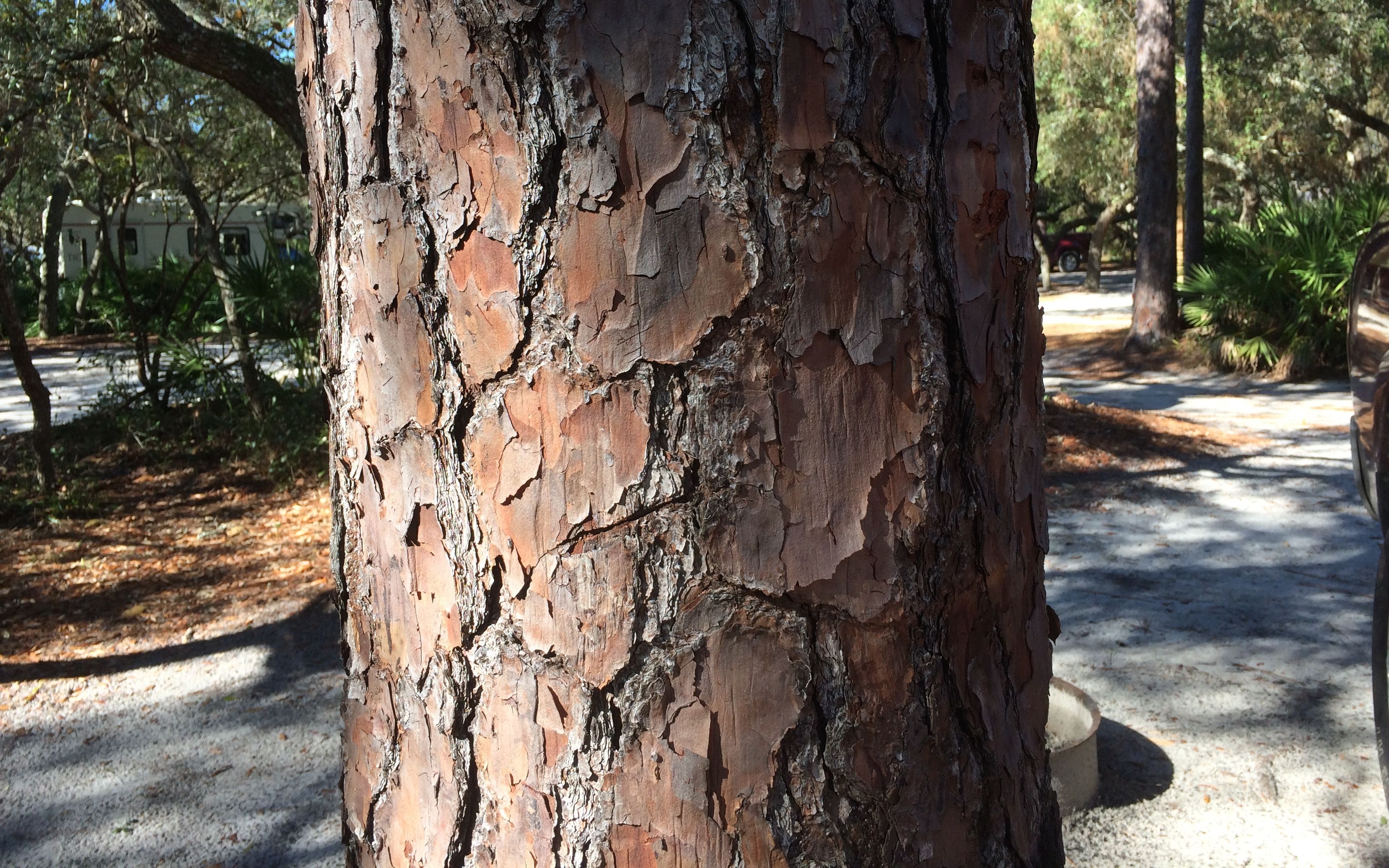 Here is a close up of a pine that I took back at my camp site. You can see how the bark is layered and able to flake off.