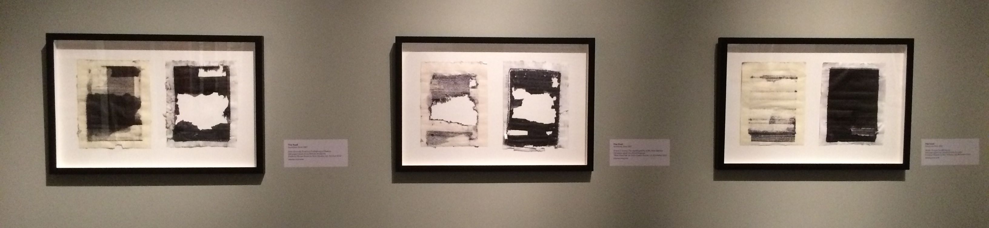 These are some of his works. The page he typed on is on the right side of the frame and the backing sheet is on the left.