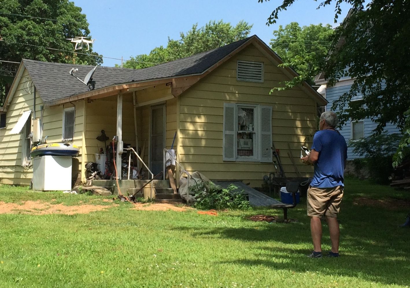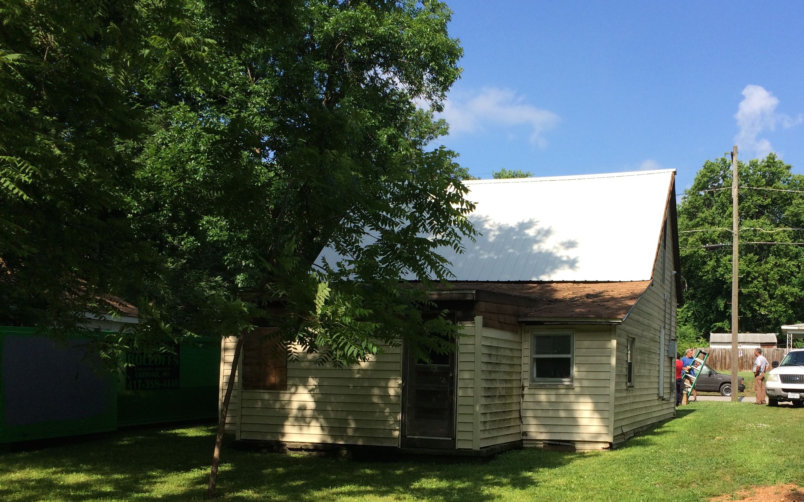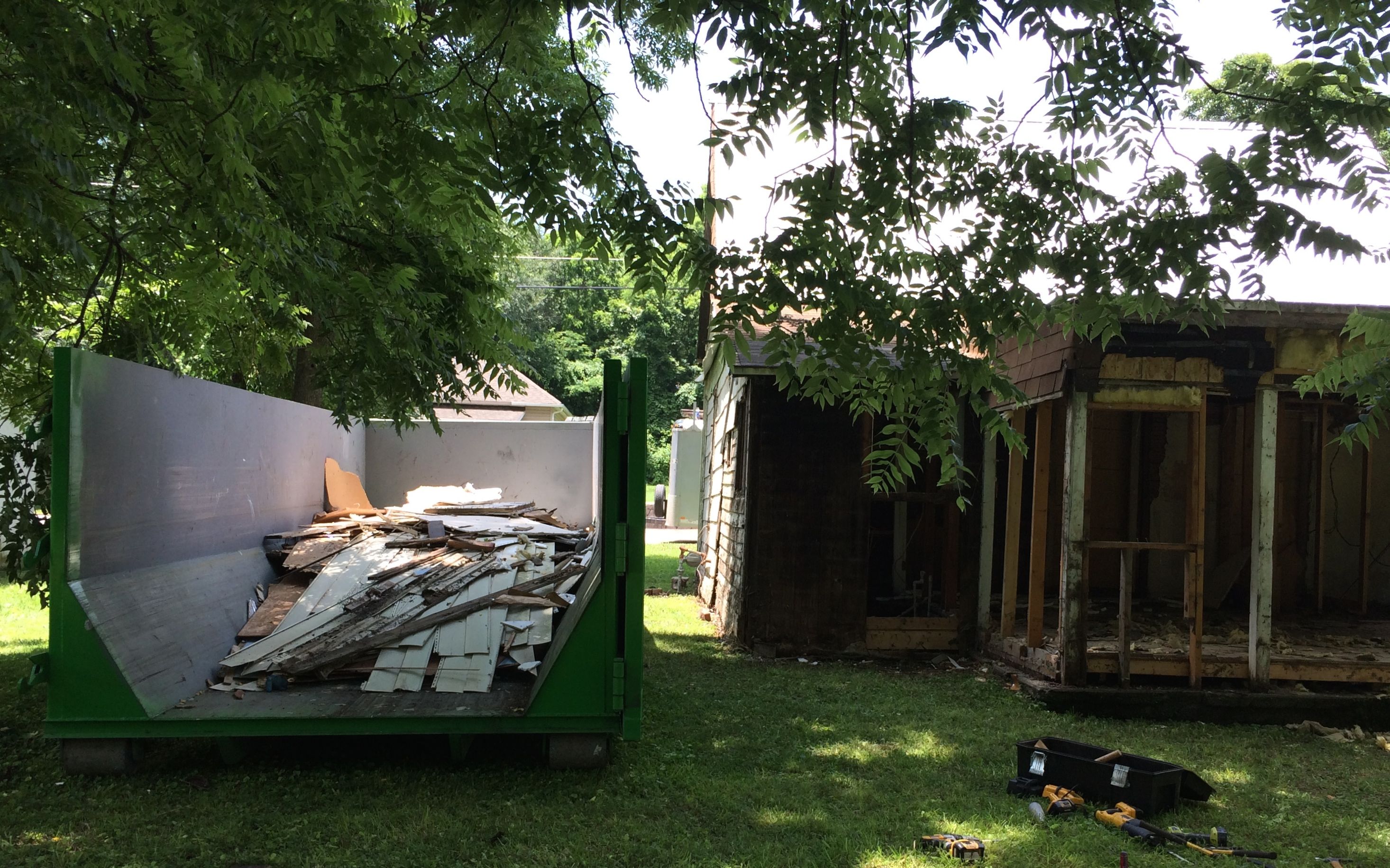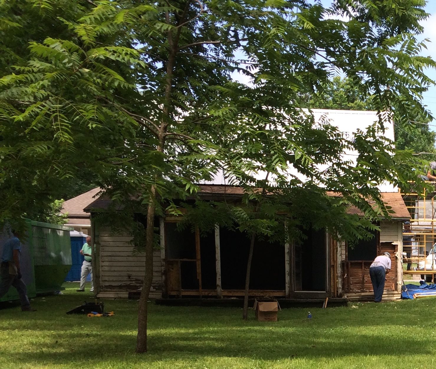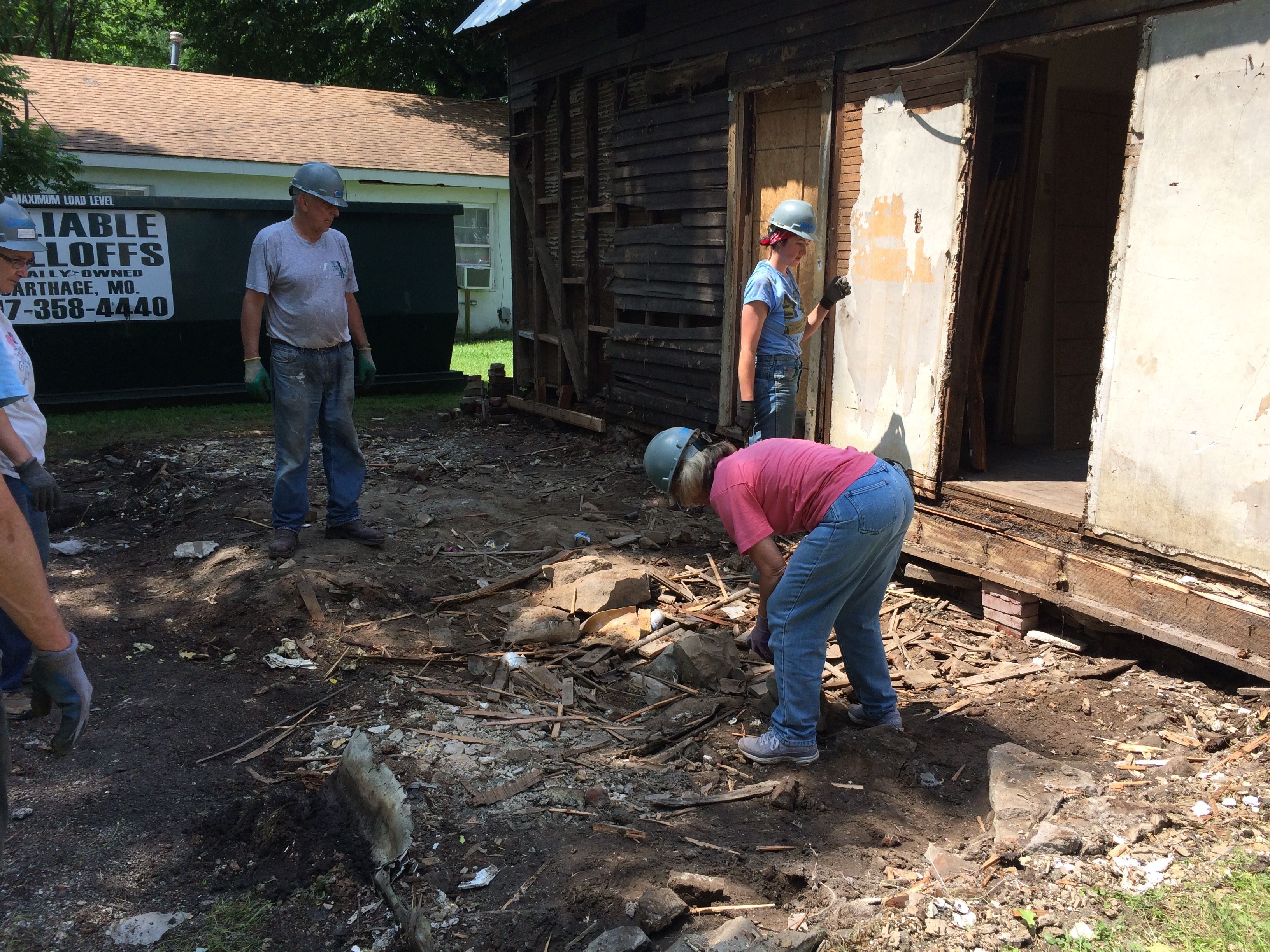 This is the view of the back of the building, most of which we would be removing. Mature trees lent much appreciated shade in the steamy Missouri weather.