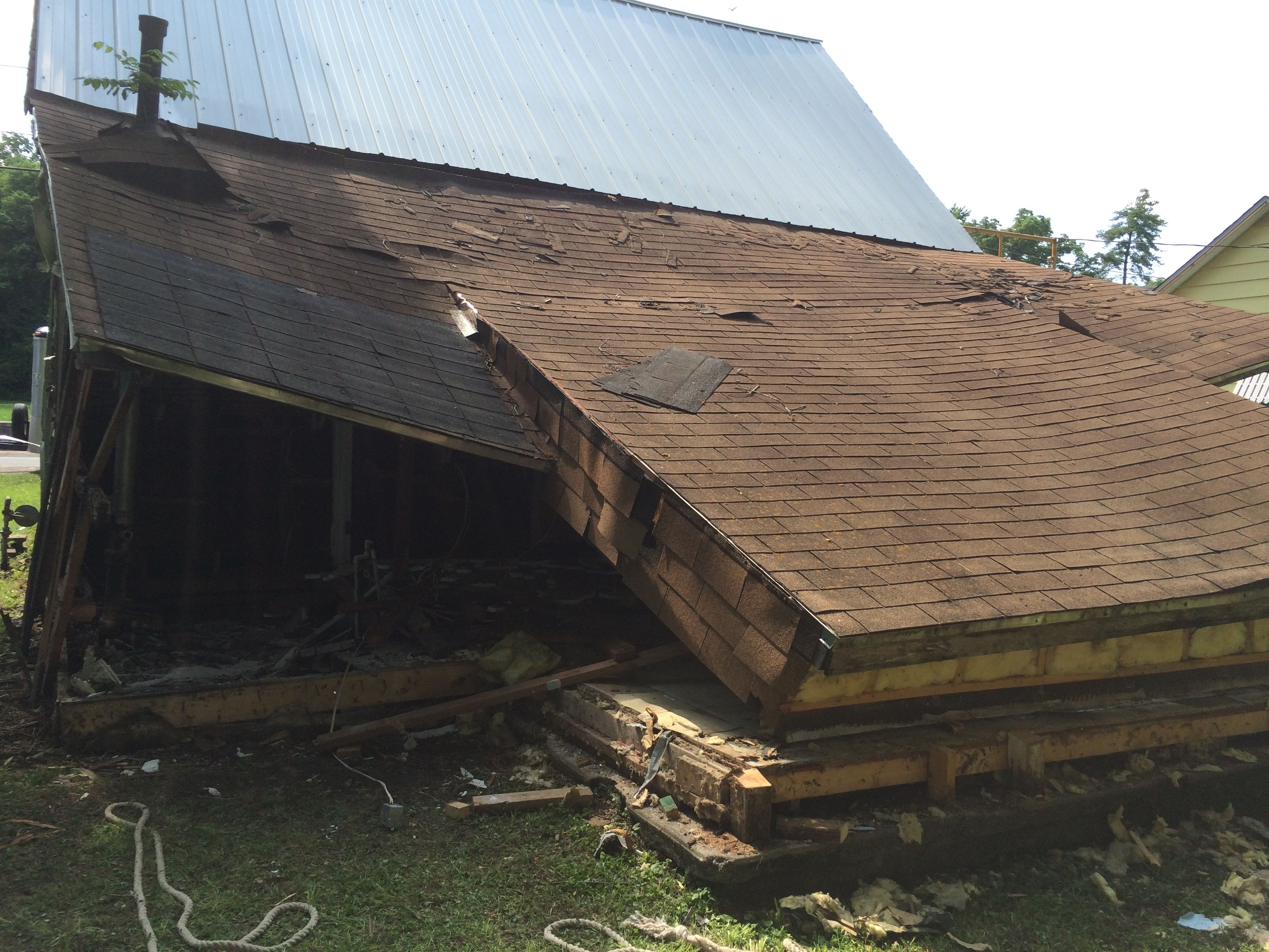 The roof is just about gone. We filled up one dumpster and almost filled up another.