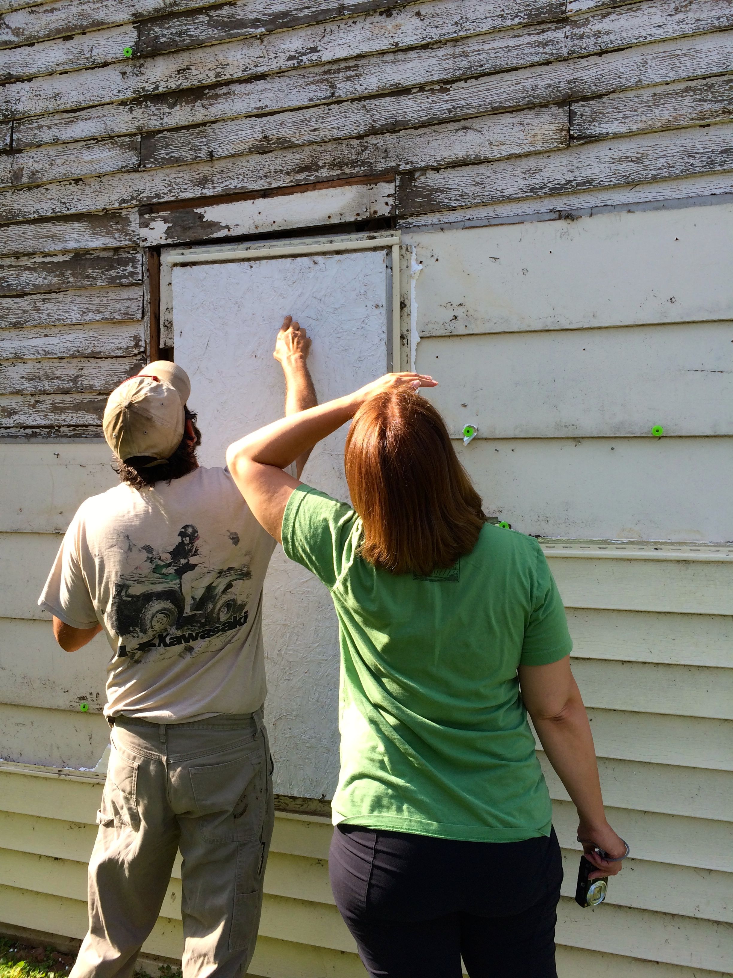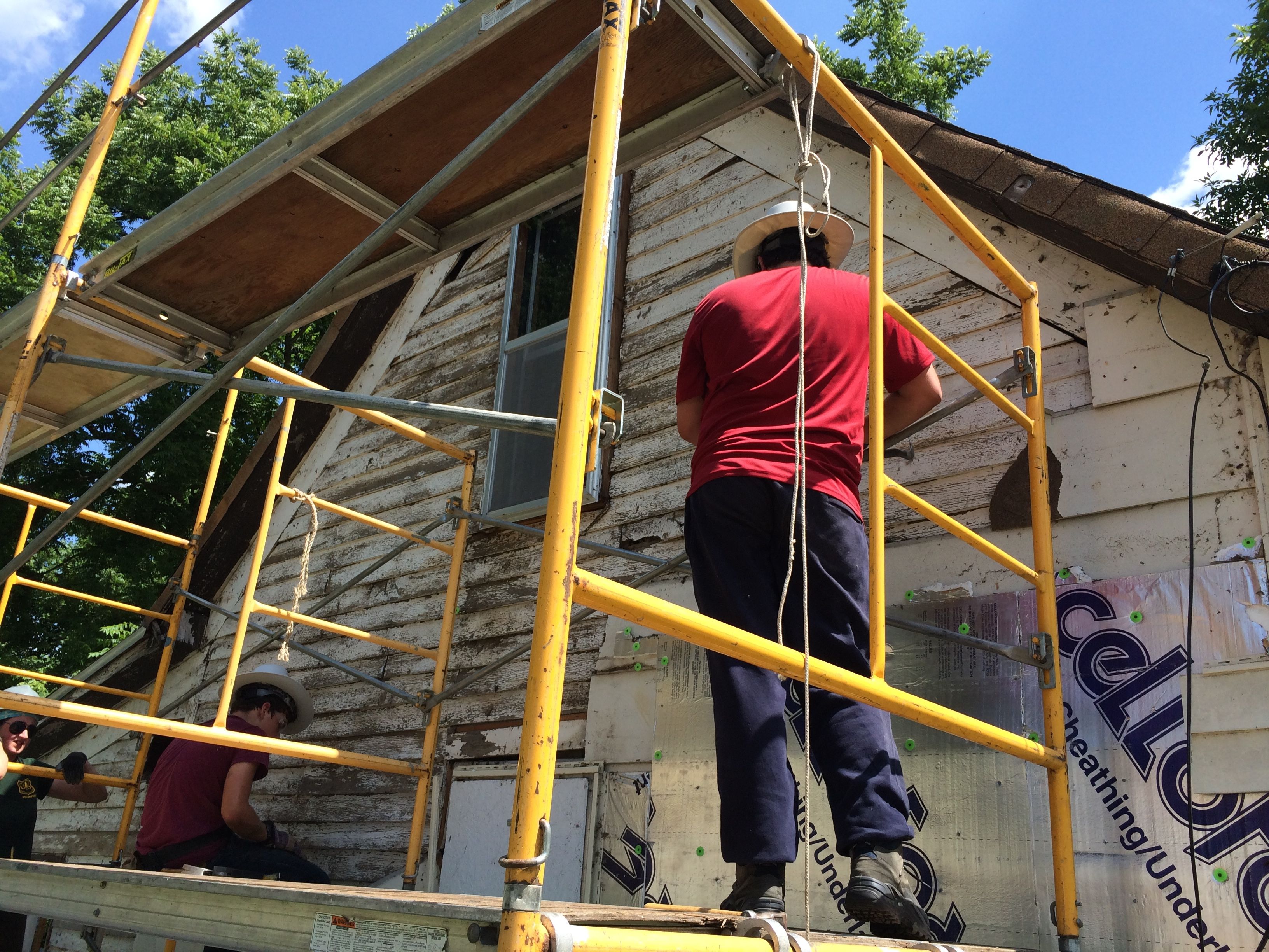 We were finally issued our hard hats and set to work. First job, remove the siding on the additions in the back.