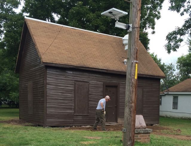 The school was started in 1872, and George Washington Carver referred to school as “the Golden Door of Freedom.” When Missouri was directed to provide for education of the former enslaved people, they bought a building that had been built on speculation. It was a two-room building built in the style called “hall and parlor“. It was intended to be a house, but it had not yet been lived in when the city bought it. It was used as a dwelling after it was no longer used as a school. HistoriCorps‘ task during the three weeks it scheduled to work was to take off the additions and stabilize it for future preservation.