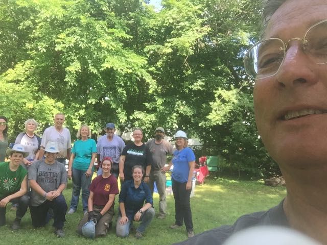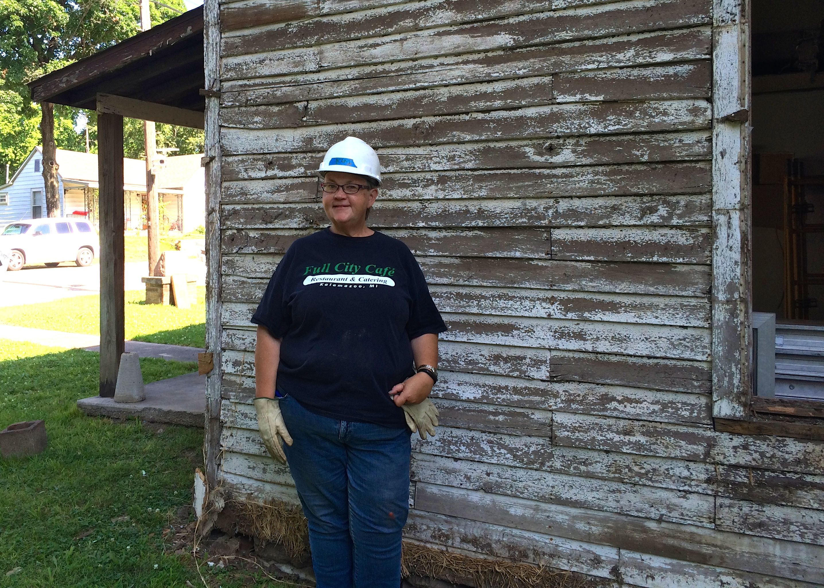 The our first project-related task was to walk around and check out the building and identify what we would be doing. Our job was to remove the additions that had been made to the back, as well as all the non-original siding. The porch would be removed by a later team.