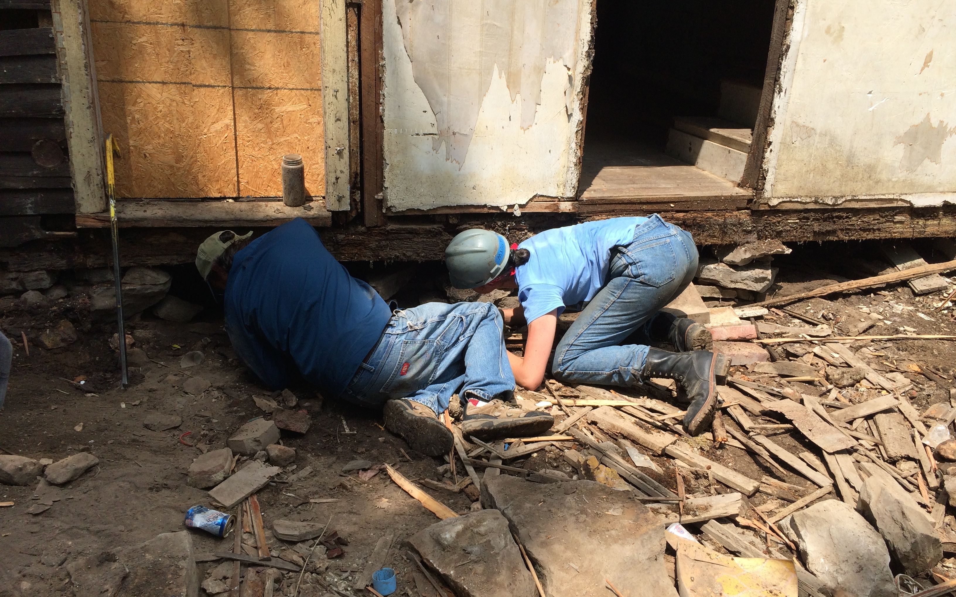 After we had the rear additions removed, they started planning for the next steps. Unfortunately, some of the projects for the coming weeks included replacing the rotted and termite-riddled sills and shoring up the foundations. Fortunately, this was not a project for our group.