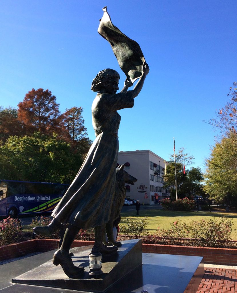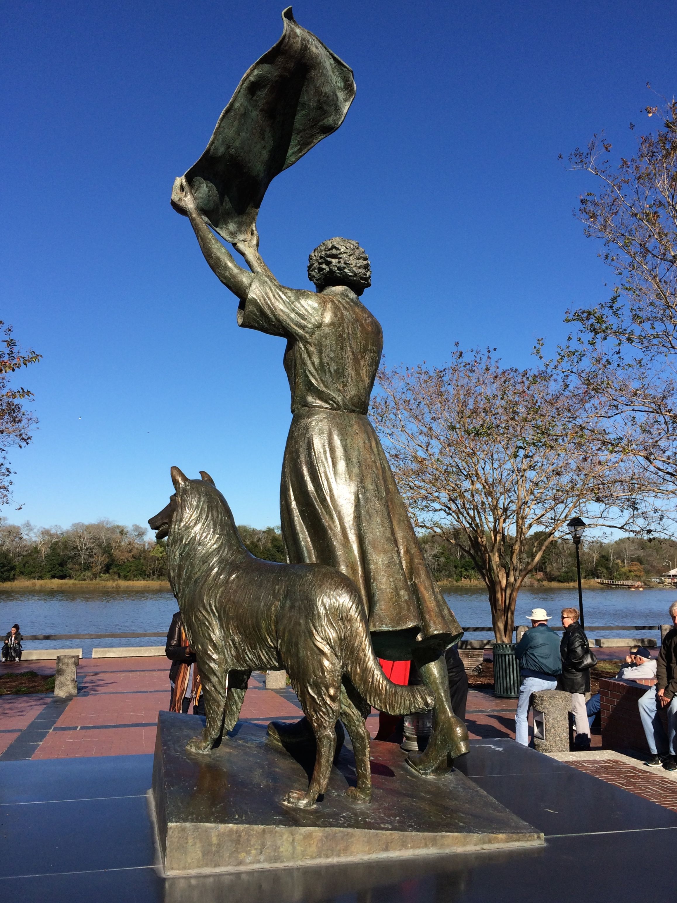 Theo Alice Ruggles Kitson, was one of the most prolific female bronze sculptors in America. The monument cost $4,500 and is on top of a 15-ton boulder from Massachusetts.