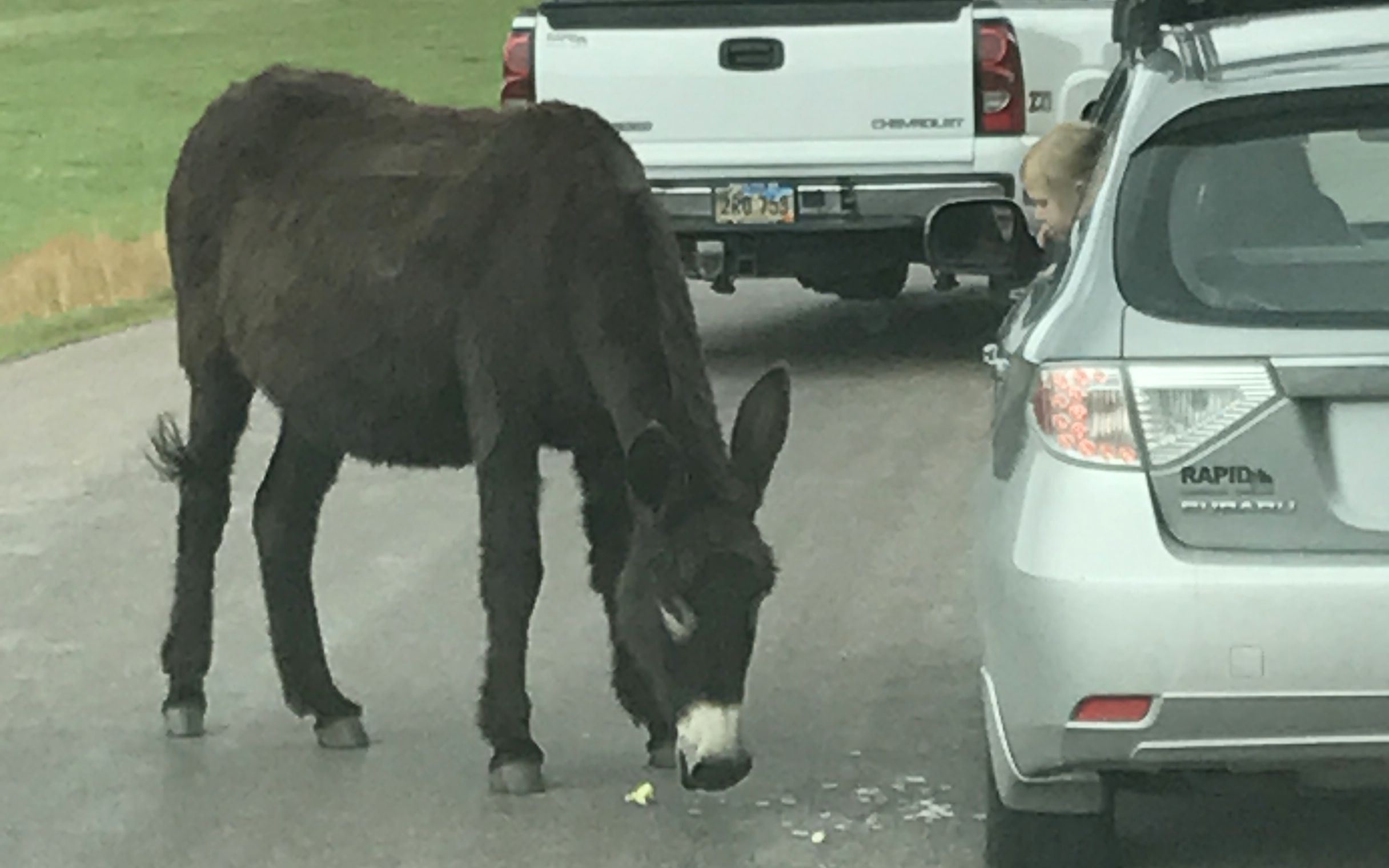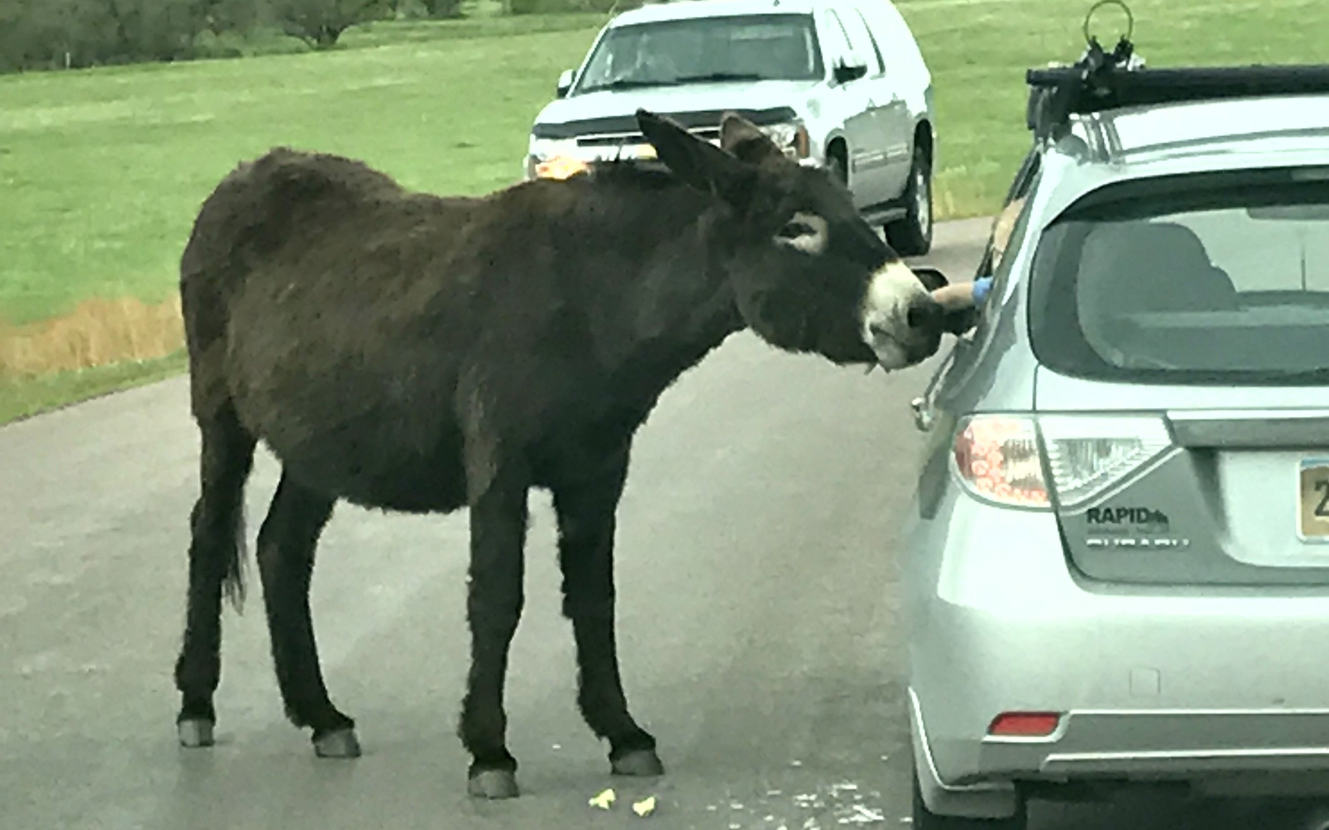 They come right up to the cars and take whatever is offered. In fact, they stick their muzzles right into the cars.