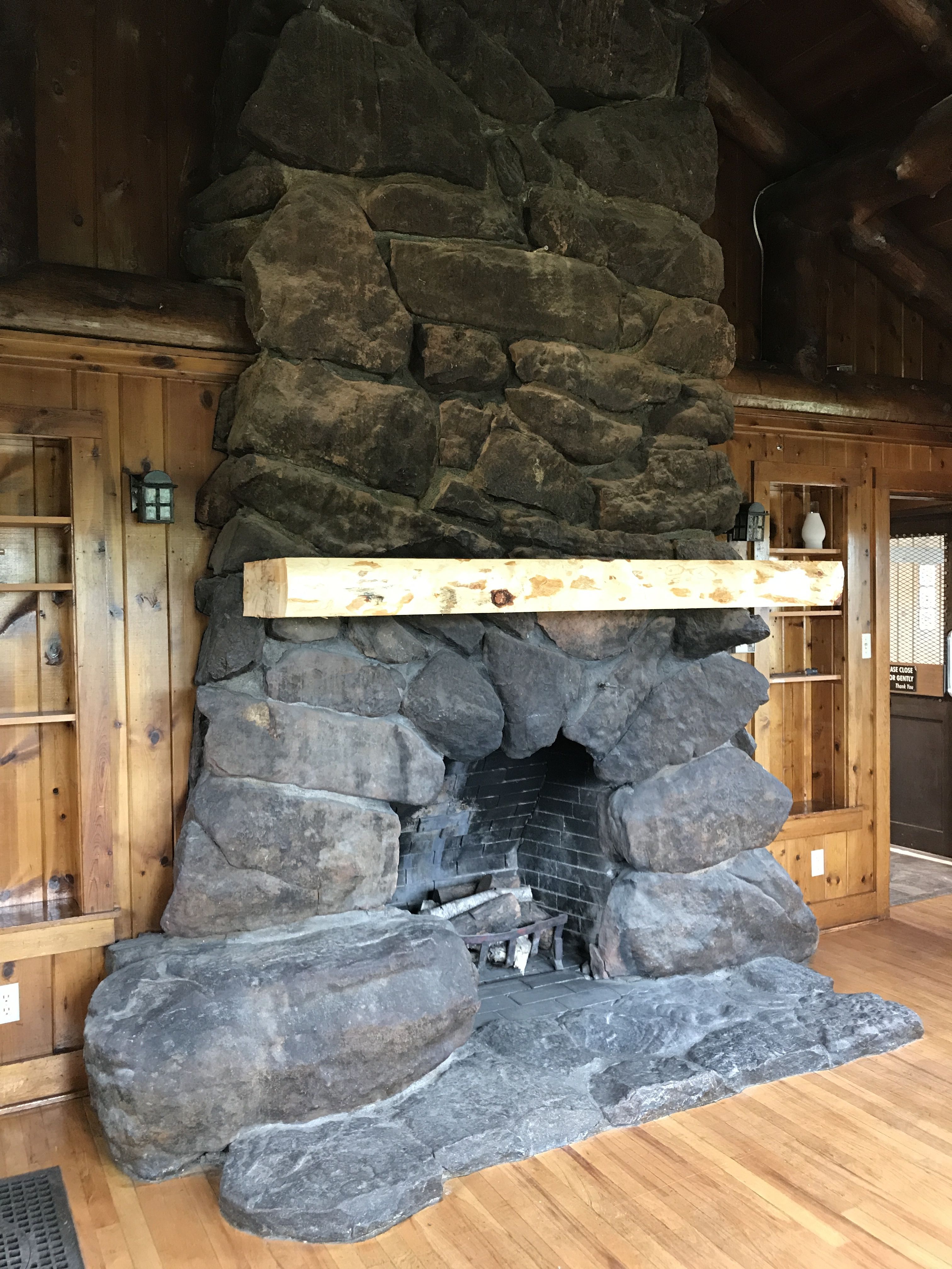 This fireplace is quite something, with its irregular boulders. If I remember correctly, this building had just undergone some renovation. A building like this is worth taking care of.