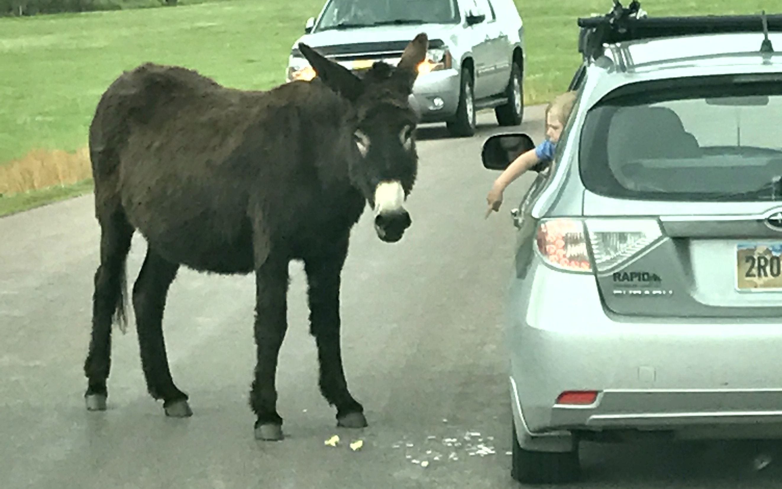 I watched in fascination as the car in front of me fed the burros bread. I couldn’t believe that they let their daughter stick her hands out of the car and touch the burro. They do have teeth, after all.
