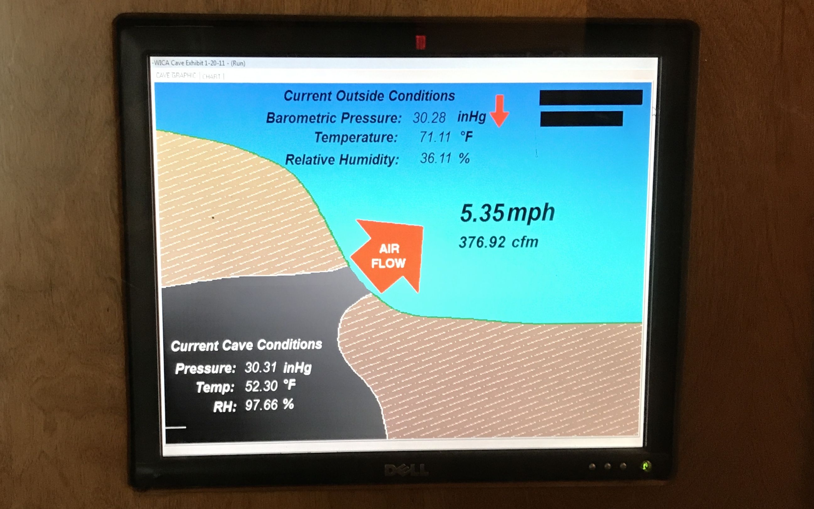 After the tour of the cave, I took a picture of this display in the museum area. So the air was flowing out at about 5.35 mph.