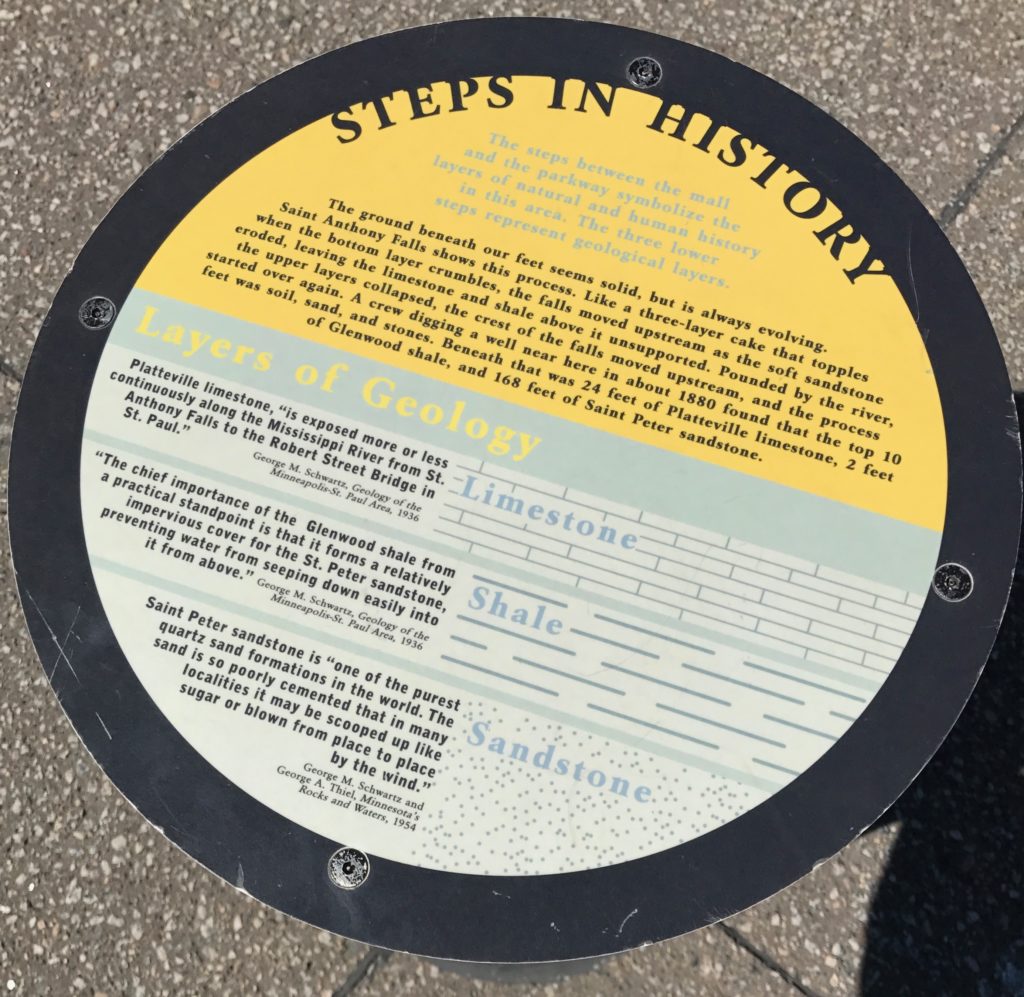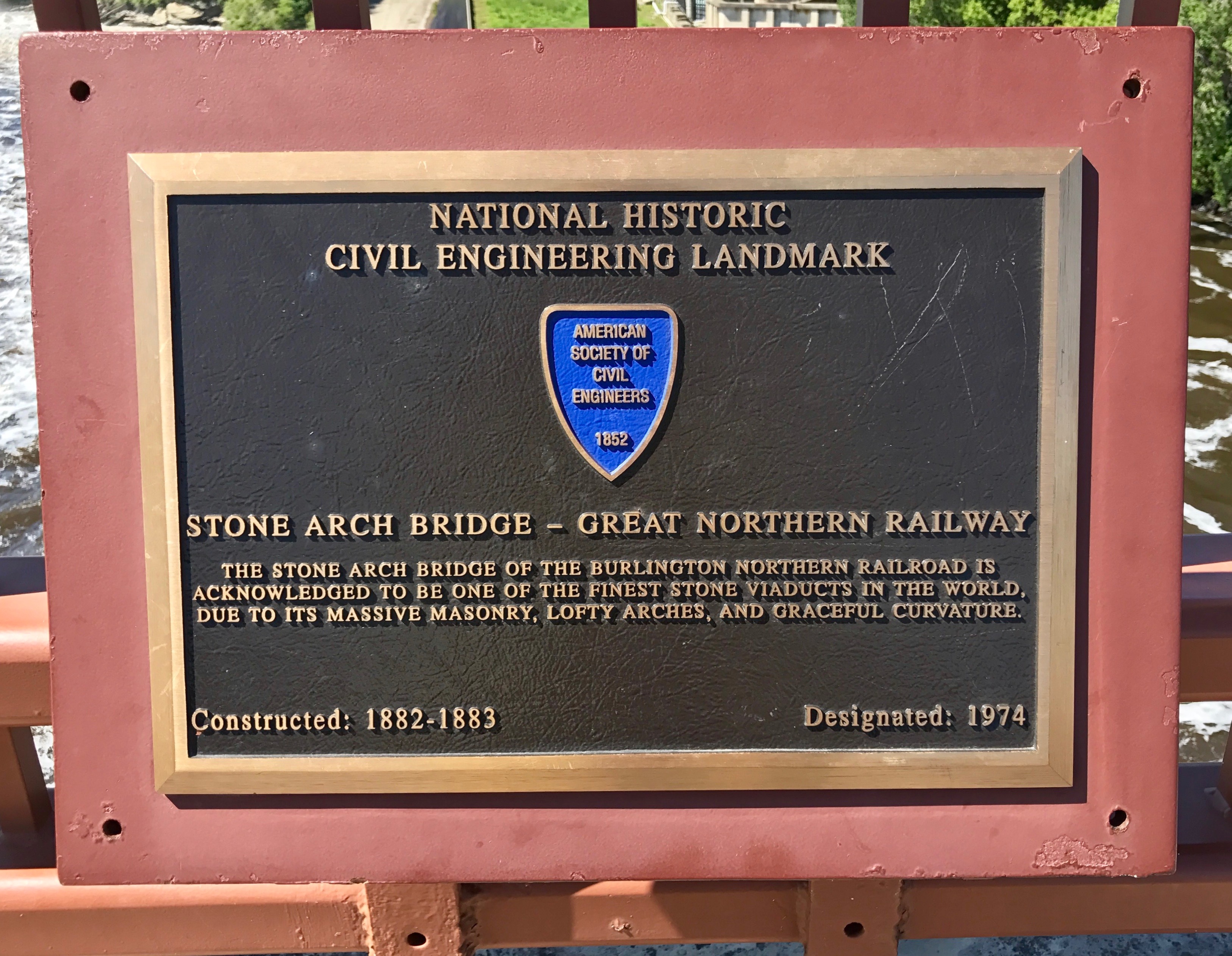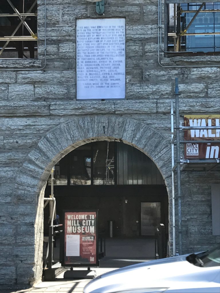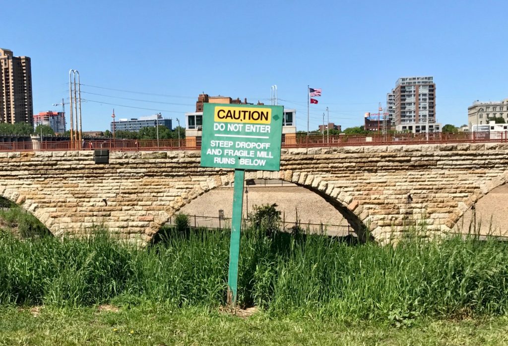 I decided to cross the river on that stone bridge I saw from the observation deck and I headed in that direction. Nothing like having a bird’s eye view to help you plan your route.Hmm. Mill City Museum. I guess I’ll have to put it on my “Next Time” list.This is the plaque that is above the archway. The Washburn Mill explosion was quite a disaster. I was getting closer to the bridge. There was really no need to warn me about staying away from a steep drop off. I guess if you went over the edge, this is what you might see on the way down.
