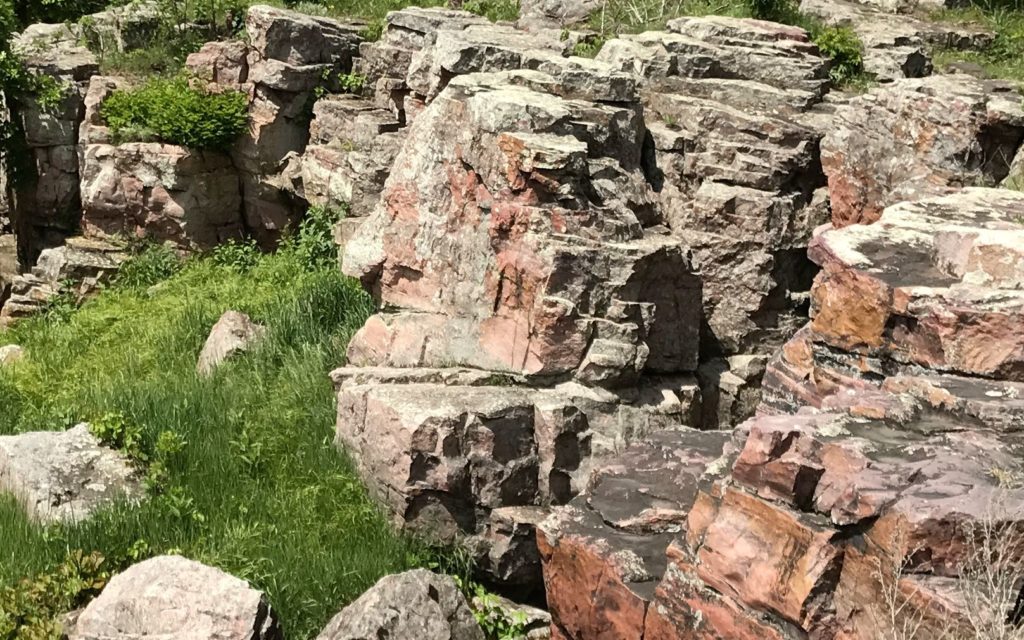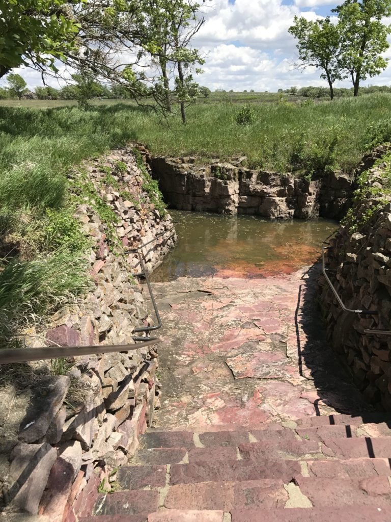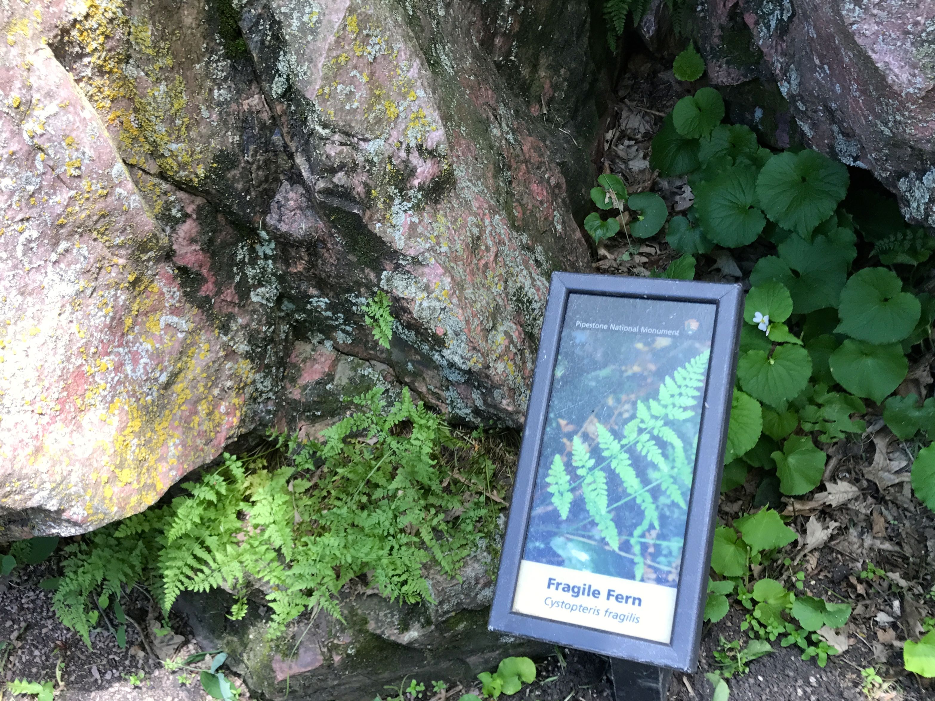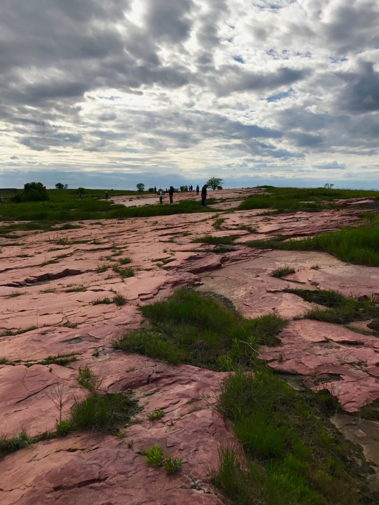 It turns out that pipestone is another name for catlinite. It’s a metamorphosed mudstone that is found in formations of Sioux Quartzite. It’s fine-grained and easily worked and used in making ceremonial pipes for all of the Plains Indians. It was so important that to all the Plains Indians that this was neutral territory where all Nations could quarry stone for ceremonial pipes.