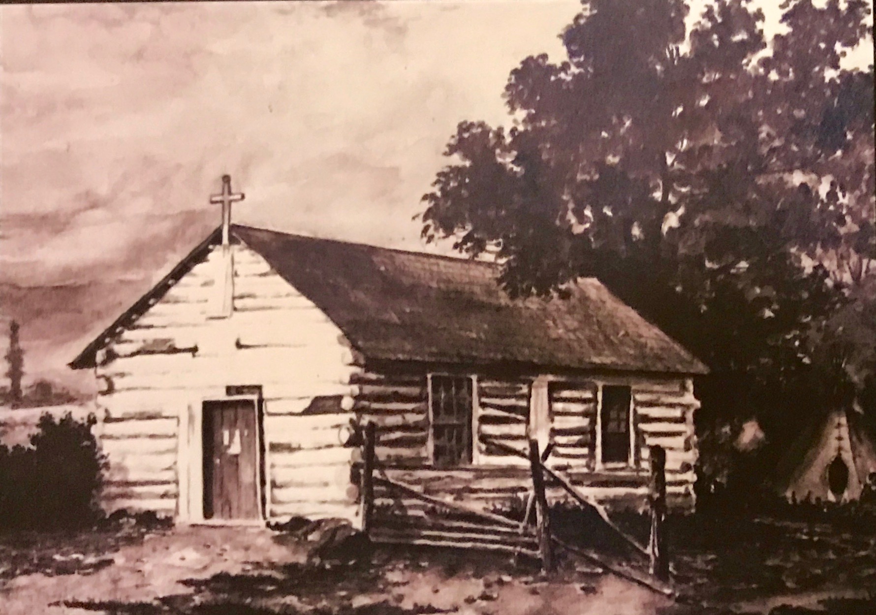 There was a drawing of the first church in what became the Diocese of St. Paul. It was built in 1841 and became the cathedral when Joseph Crétin was appointed as bishop of the newly established diocese in 1851. While this bears little resemblance to what we think of as a cathedral these days, a cathedral is the principal church of a diocese that contains the bishop’s seat, which is called a cathedra.