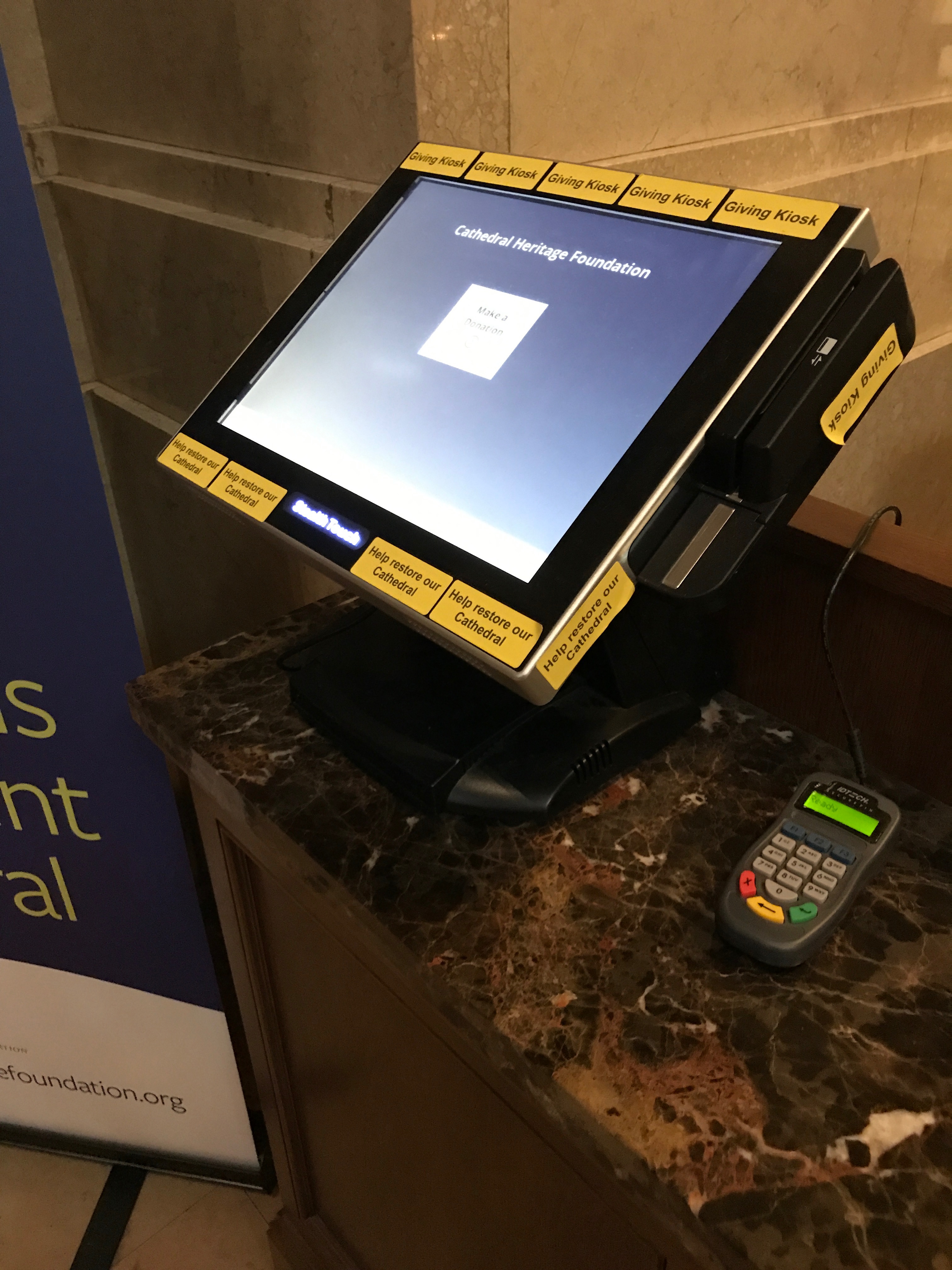 As I walked around, I noticed this banner that directed people to their Giving Kiosk.
