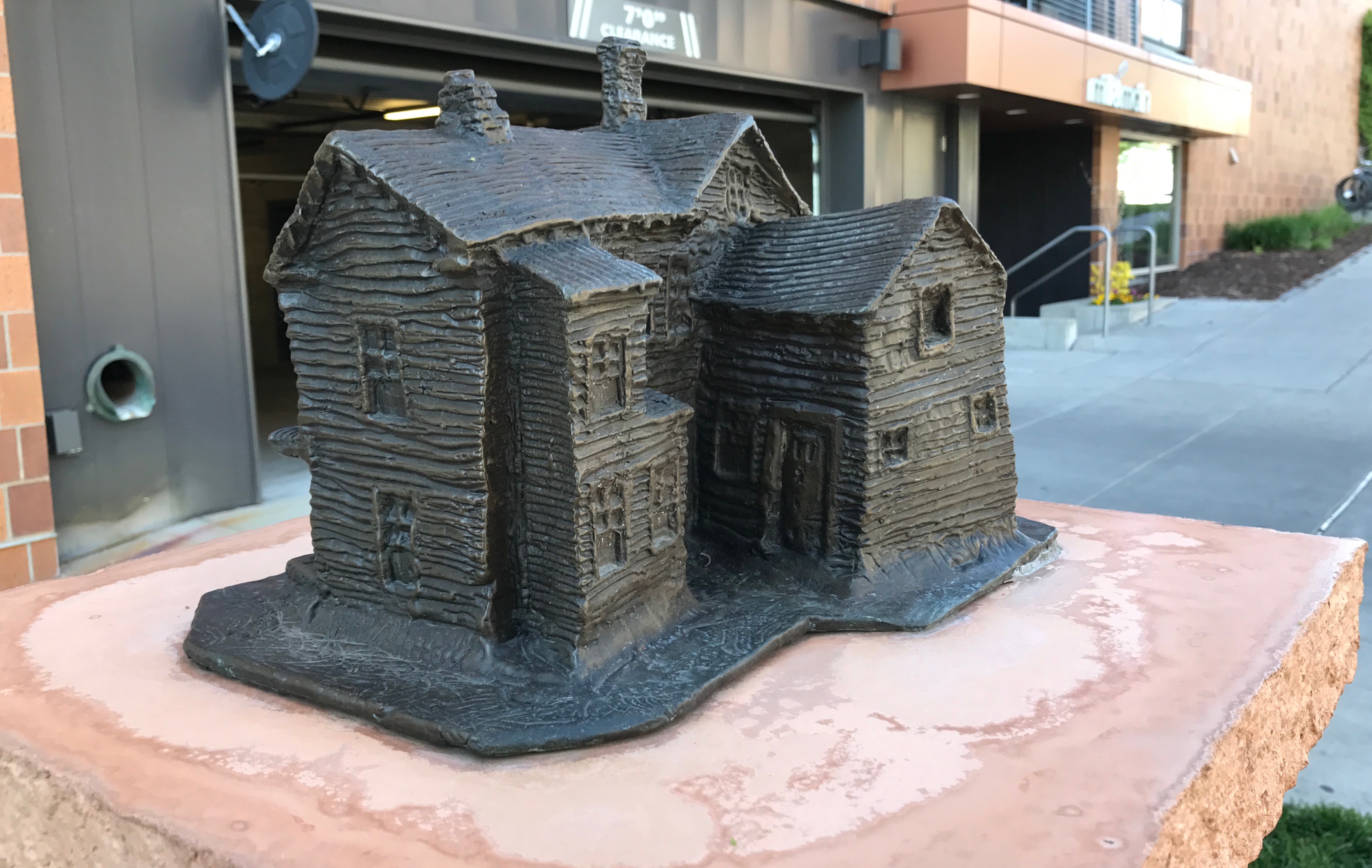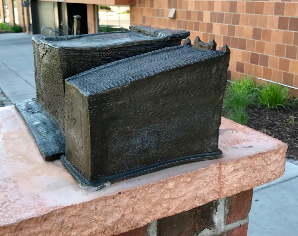 Along the way, I encountered these sculptures honoring the buildings that had been in the area. This is the Van Cleve House that was built in 1858. Horatio Van Cleve was a Civil War general. HIs wife, Charlotte, was an agent of social change who spoke out against slavery, for women’s rights and was even elected to the school board.Businessman John Dudley built this house in 1856. These buildings were built along Main Street in 1855, 1858 and 1890. They housed a hardware business, a bookstore and pharmacy as well as a saloon. You know what they say – All work and no play…The last sculpture I photographed was the Winthrop School/East High School. It was built in 1897 and 1900. The Winthrop School was in operation from 1867 until 1898, When it was replaced by East High School. Part of the school still stands, although I wasn’t sure which part it was.