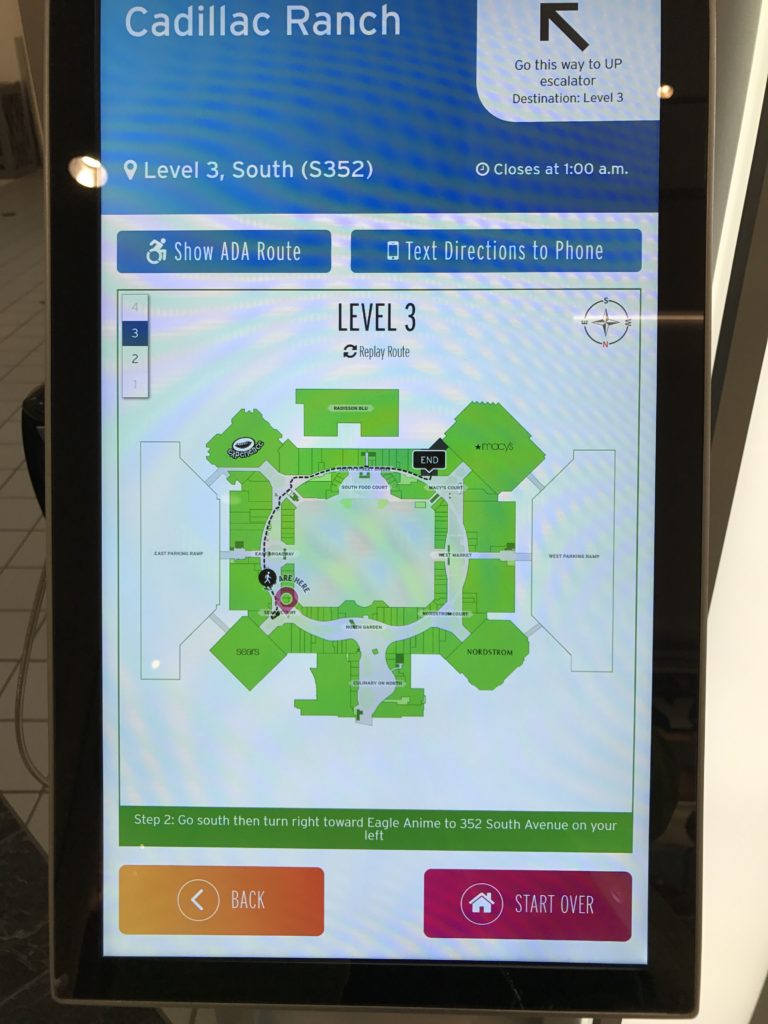 I found a kiosk that I could use to select a restaurant and then help me plan how to get there.