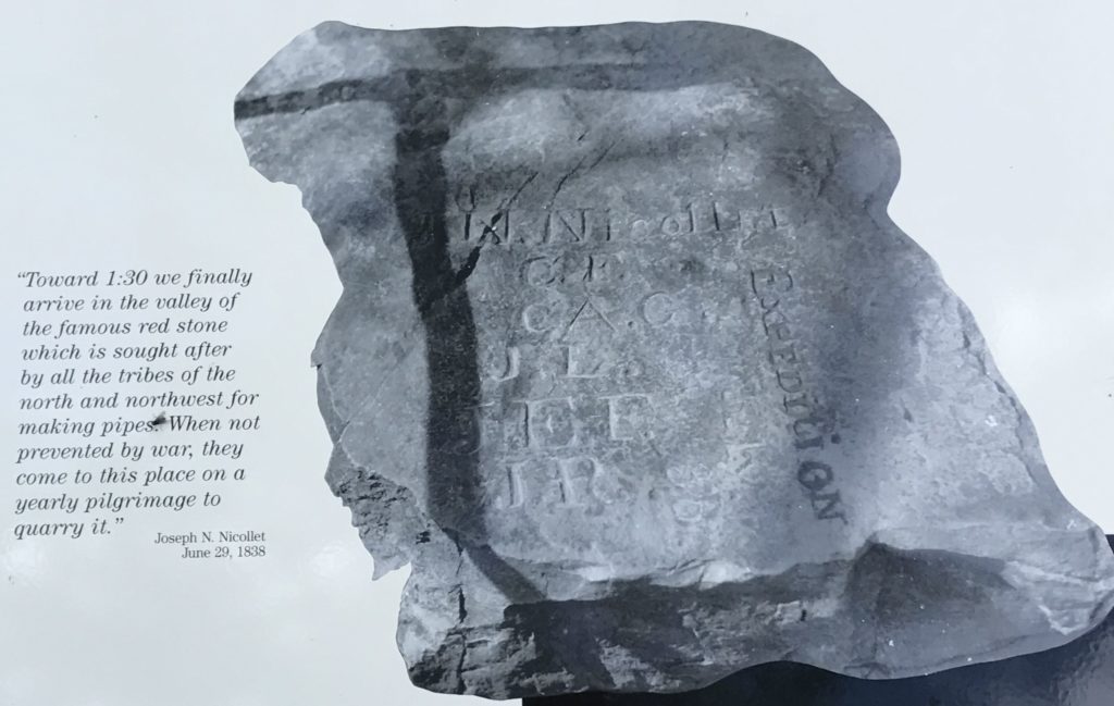In 1838, Joseph Nicollet led the first U.S. Government expedition to the pipestone quarries. He mapped the upper Mississippi River basin and his maps were the most accurate of the time.