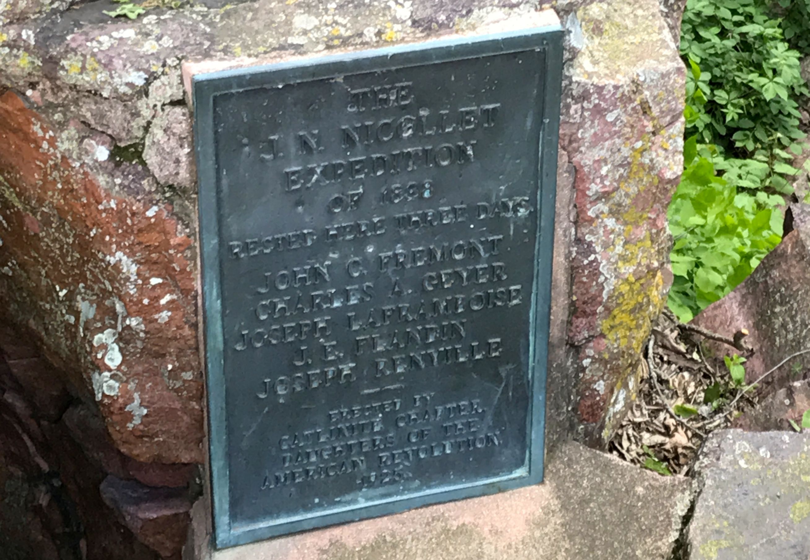 In case you can’t read this plaque memorializing the J.N, Nicollet Expedition of 1838, they rested here for three days. It lists the members of the party. I am always interested in when things were memorialized and who erected the memorial. This plaque was erected in 1925 by the Catlinite Chapter of the Daughters of the American Revolution.