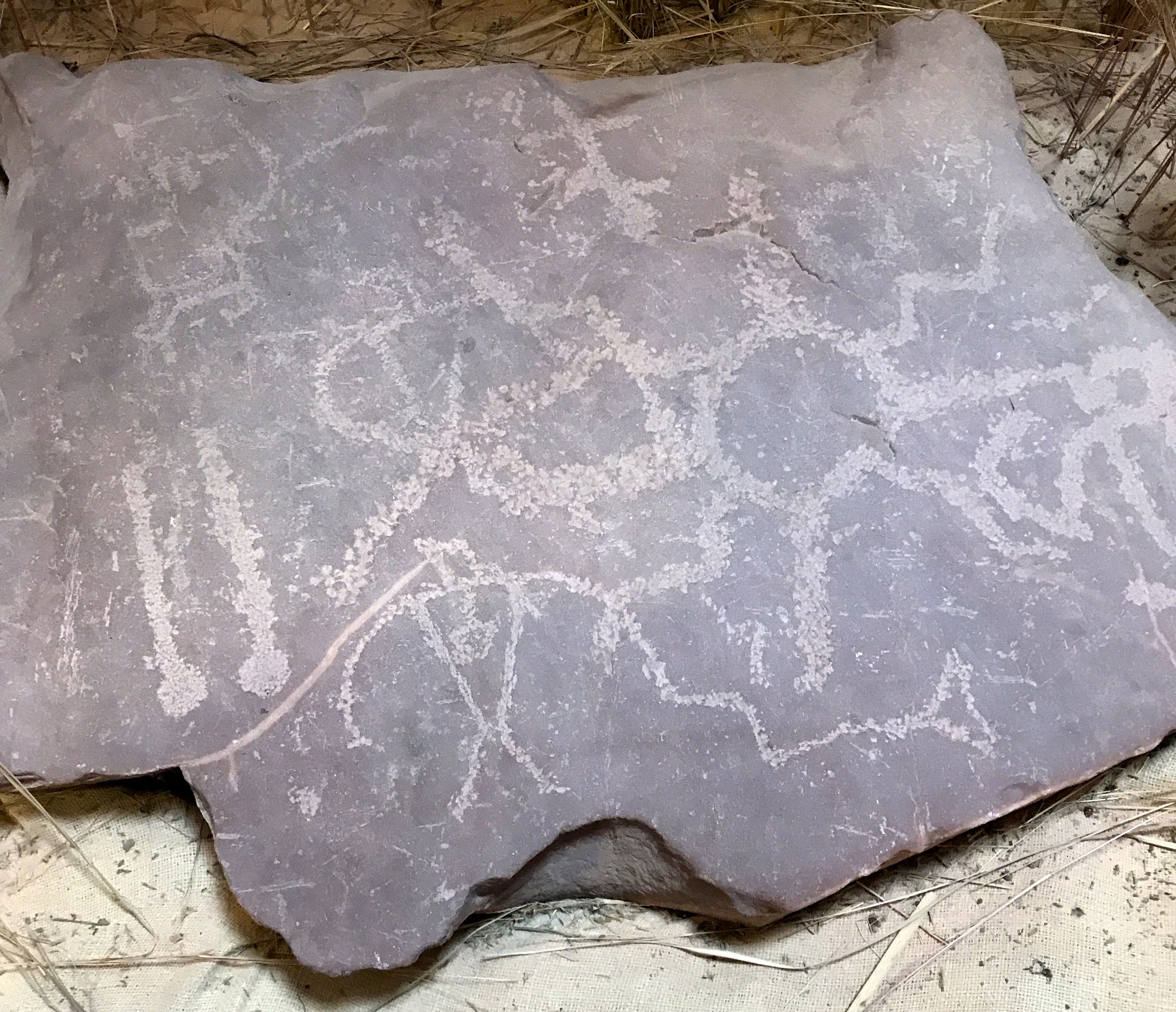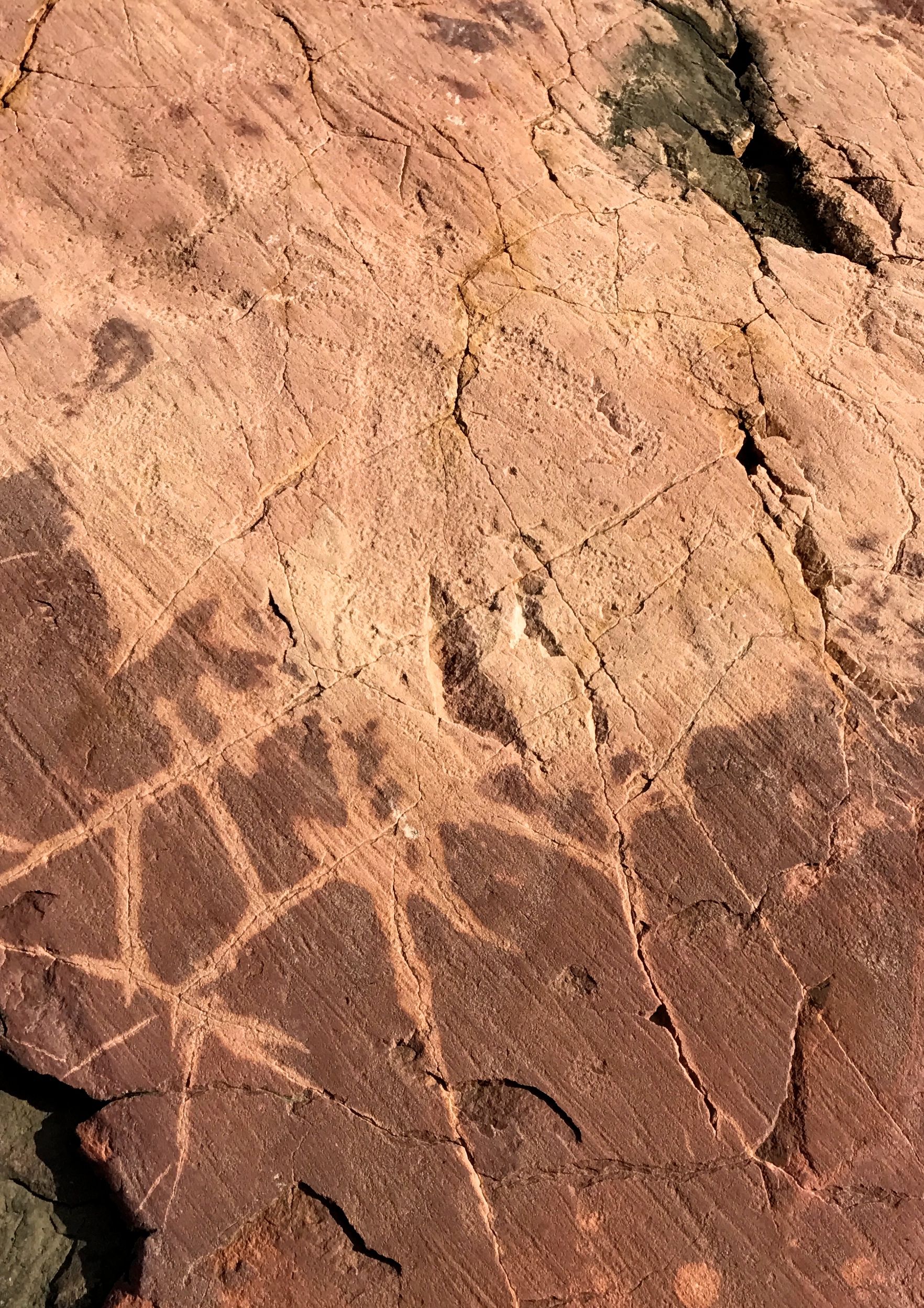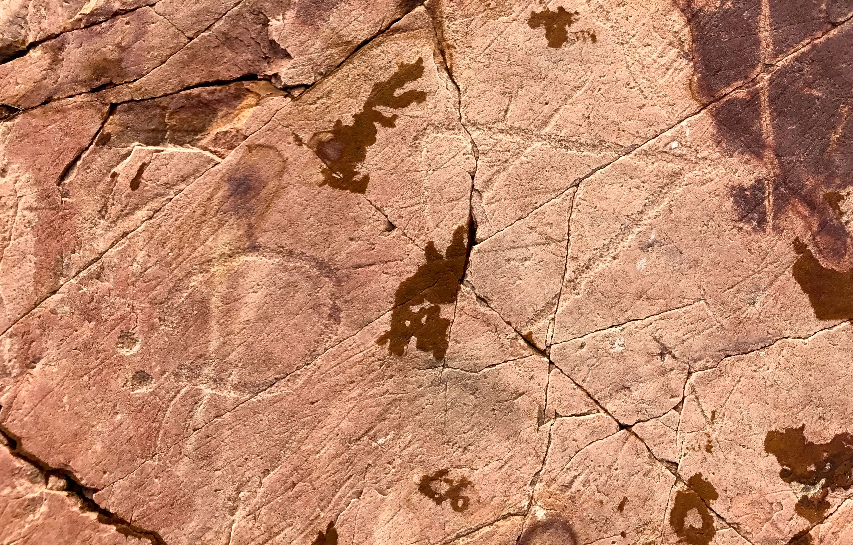 There are thousands of intentional marks. There must have been a purpose for making them. This rock is very hard and would have required a lot of effort to make the shapes and symbols. It averages between 7.5 and 8 on the Mohs Scale of hardness. That means it’s harder than granite, marble, slate, and even some other types of quartzite.