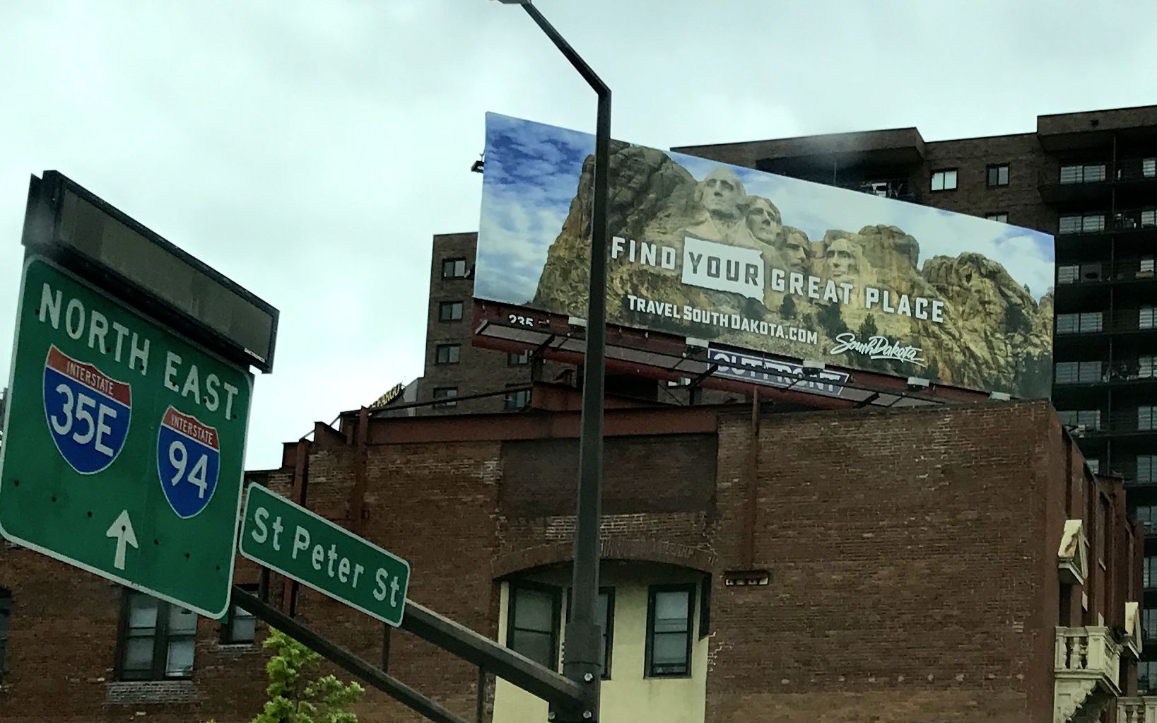 I drove around a bit. While stopped at an intersection, I spied this billboard for South Dakota. Too late! I’ve already done that state.