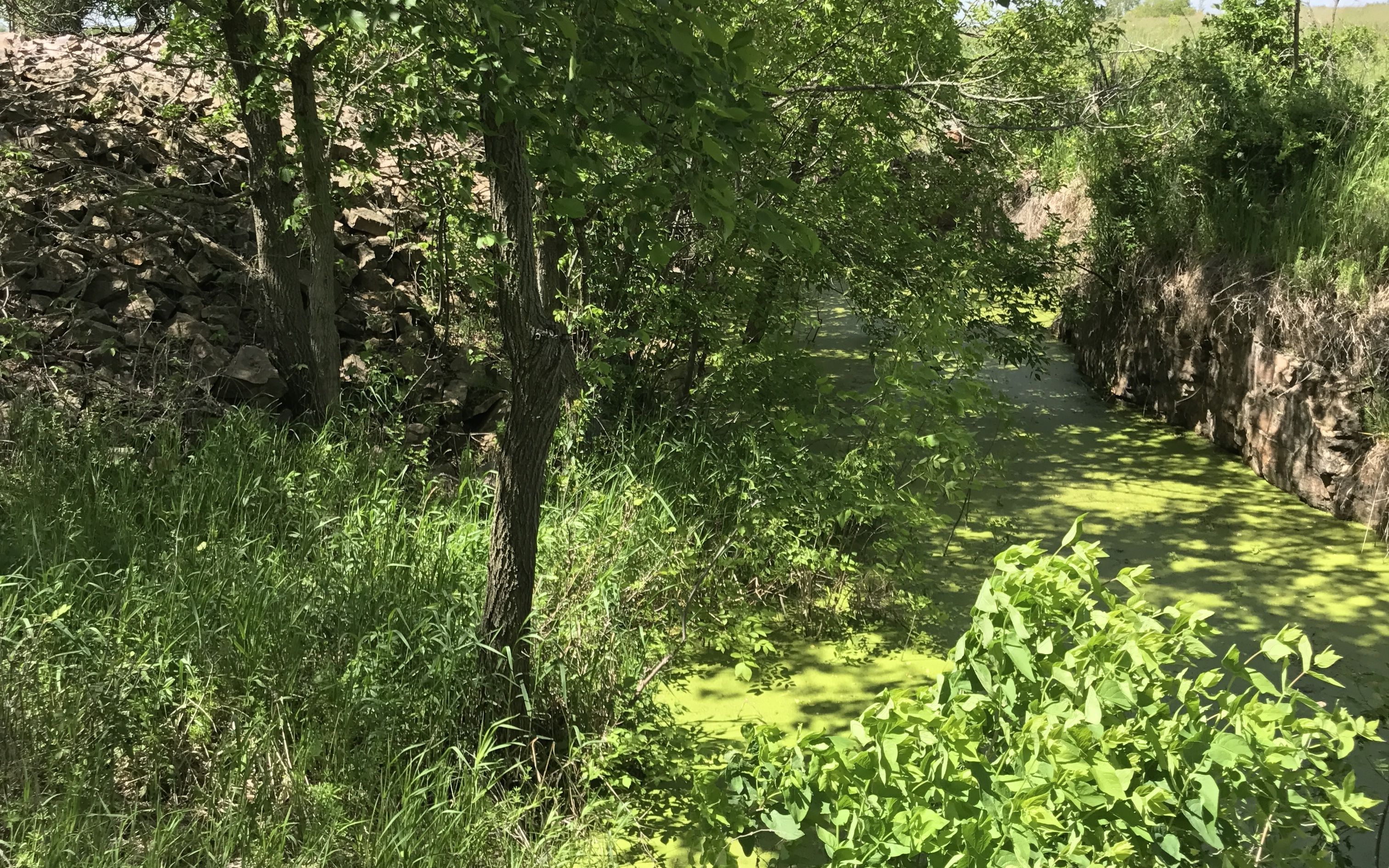 I passed at least one quarry I could identify. This one was filled with water and covered with duckweed. I wonder if it dries out in the summer?