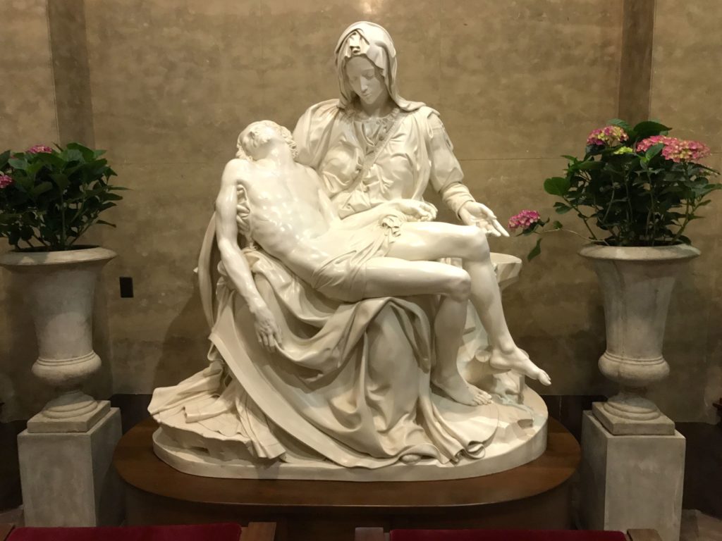I spent a few minutes admiring the cathedral’s copy of Michelangelo’s Pietà. The original is in St. Peter’s Basilica in Vatican City. I remember the first time I saw it back in 1976. I stood there with my mouth hanging open for the longest time. It was breath taking. This one was nice, but it was much smaller than the original, which was 68.5 in × 76.8 in.