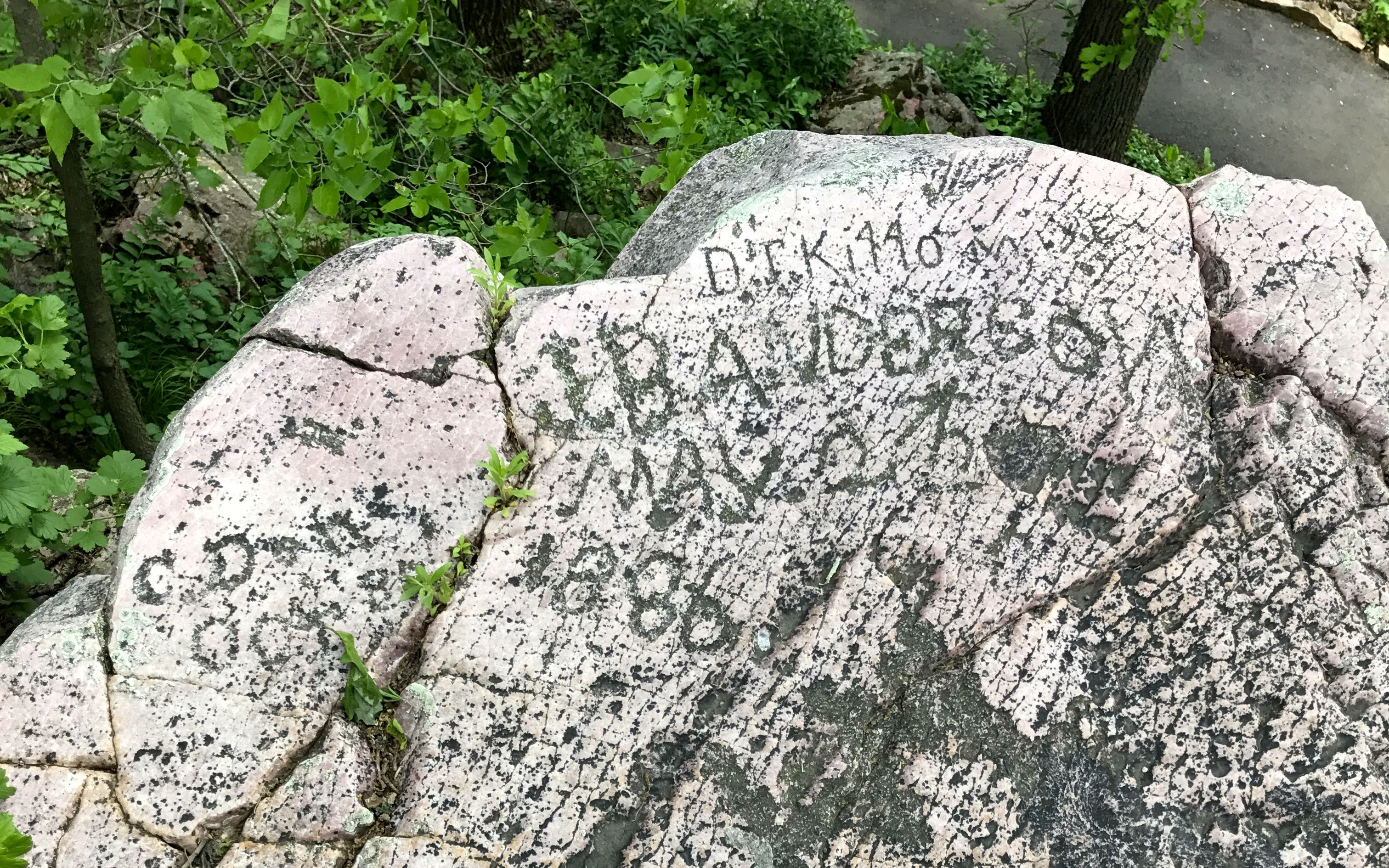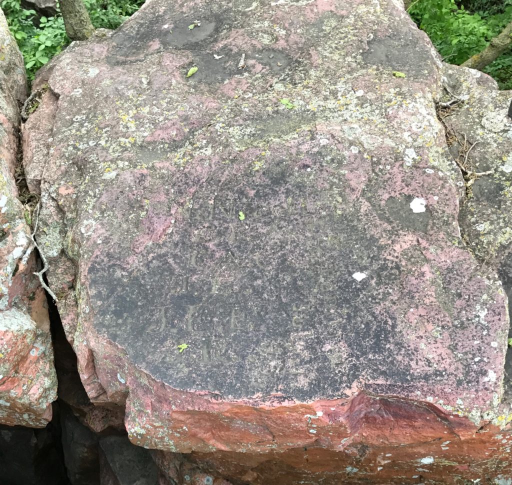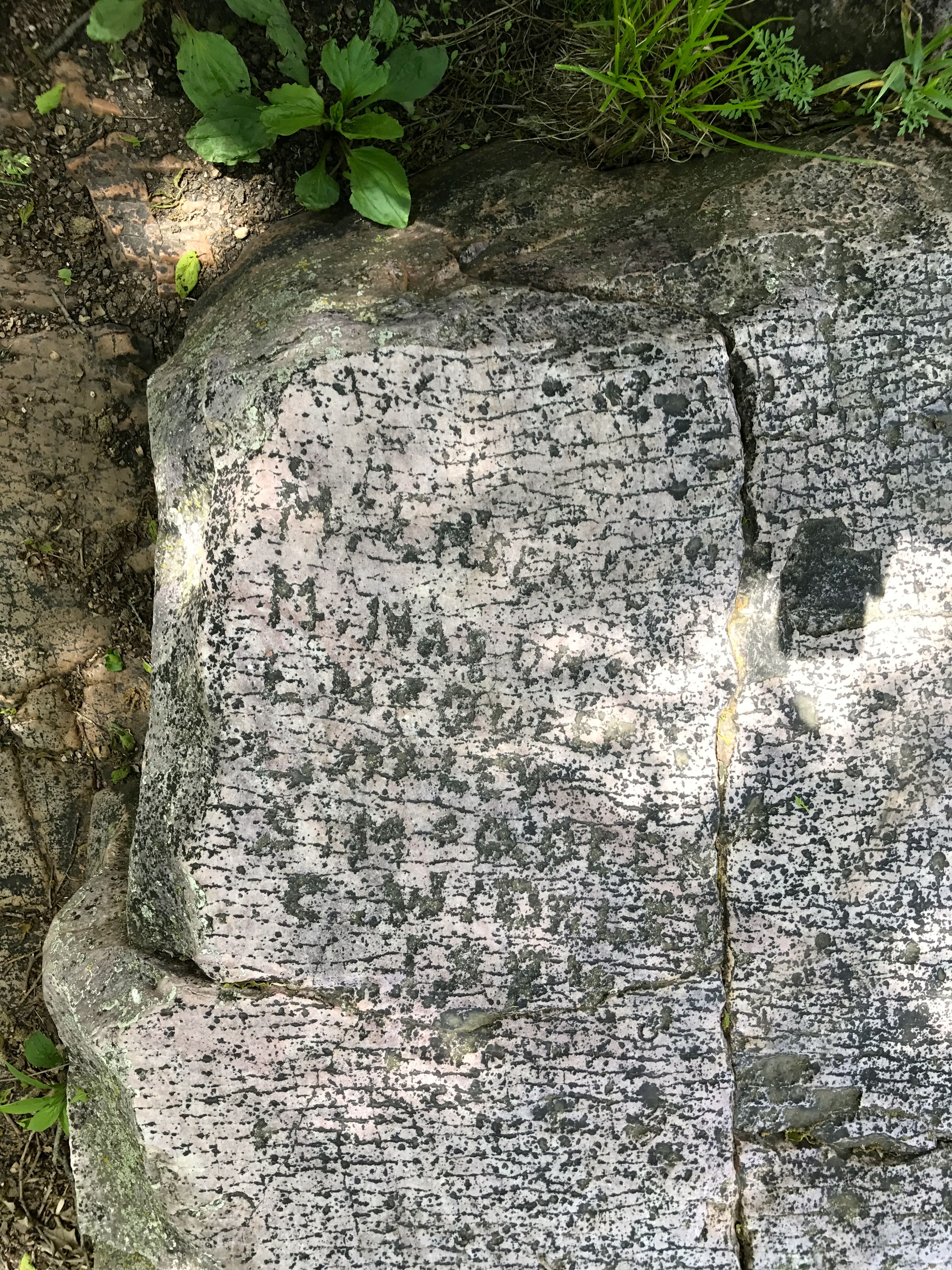 I am pretty sure that this is the stone they carved. When I enlarged it and fiddled with the settings in iPhoto, I could kind of make out the letters. The earth and its processes eventually reclaim everything. Just to be sure, I reached out to the ranger again. He said that this was the original stone.