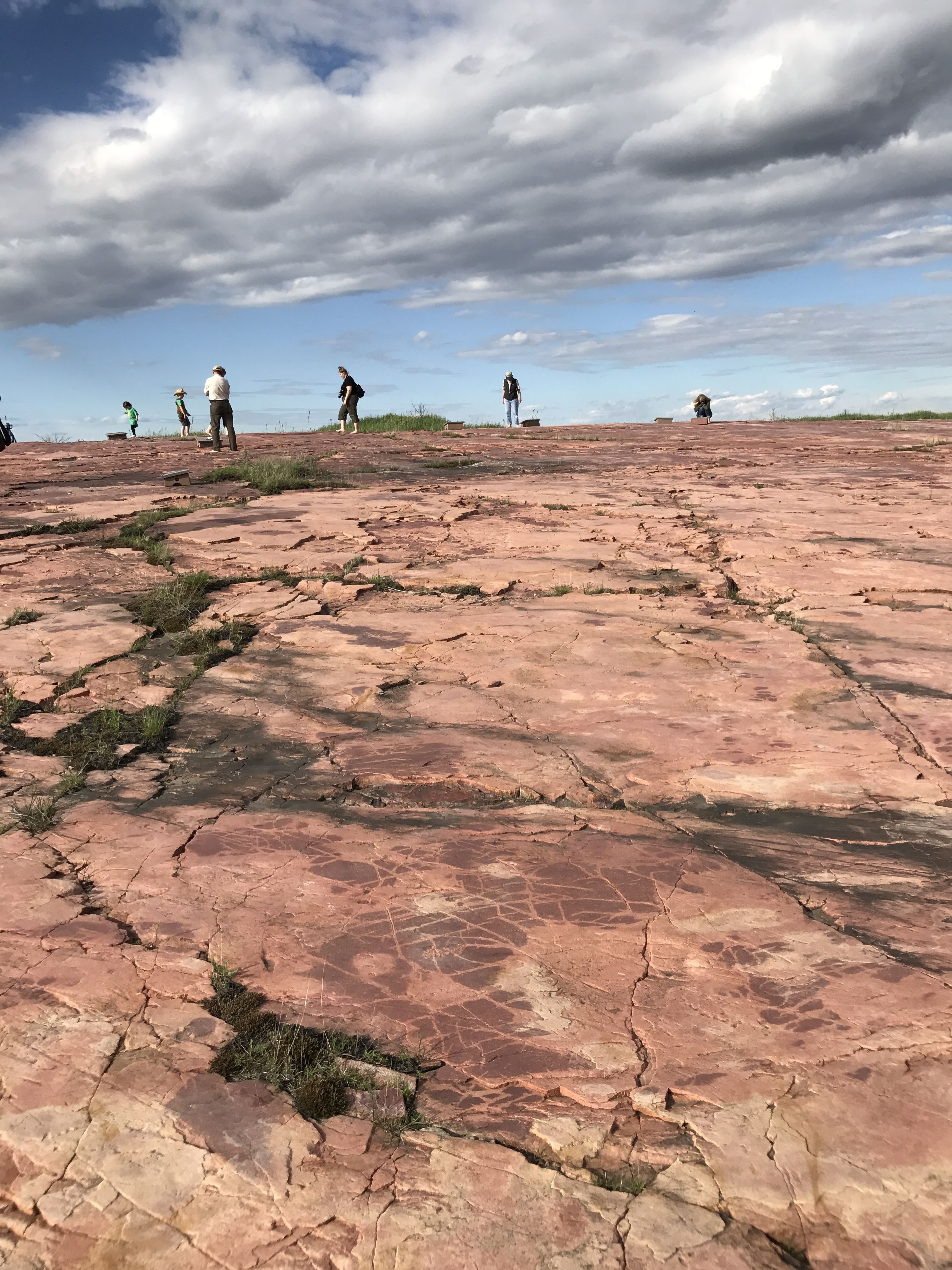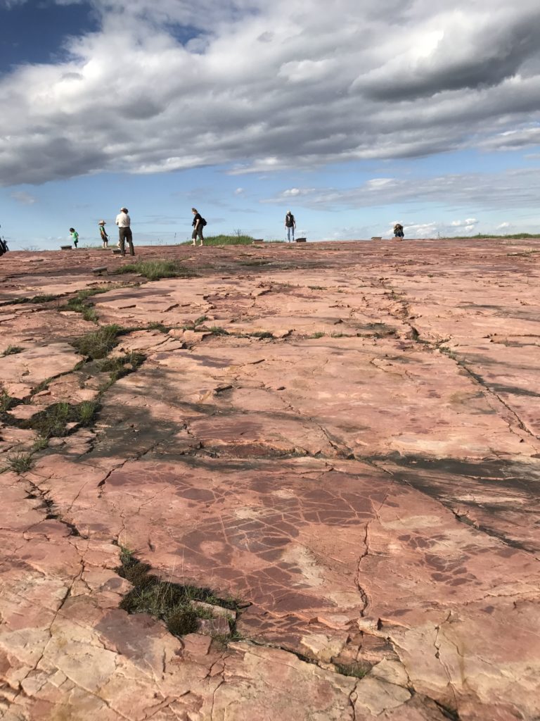 This outcropping of rock is a buffalo rub. They have rubbed against this rock to shed their winter hair each spring for perhaps the 9,000 years since they arrived in the region.