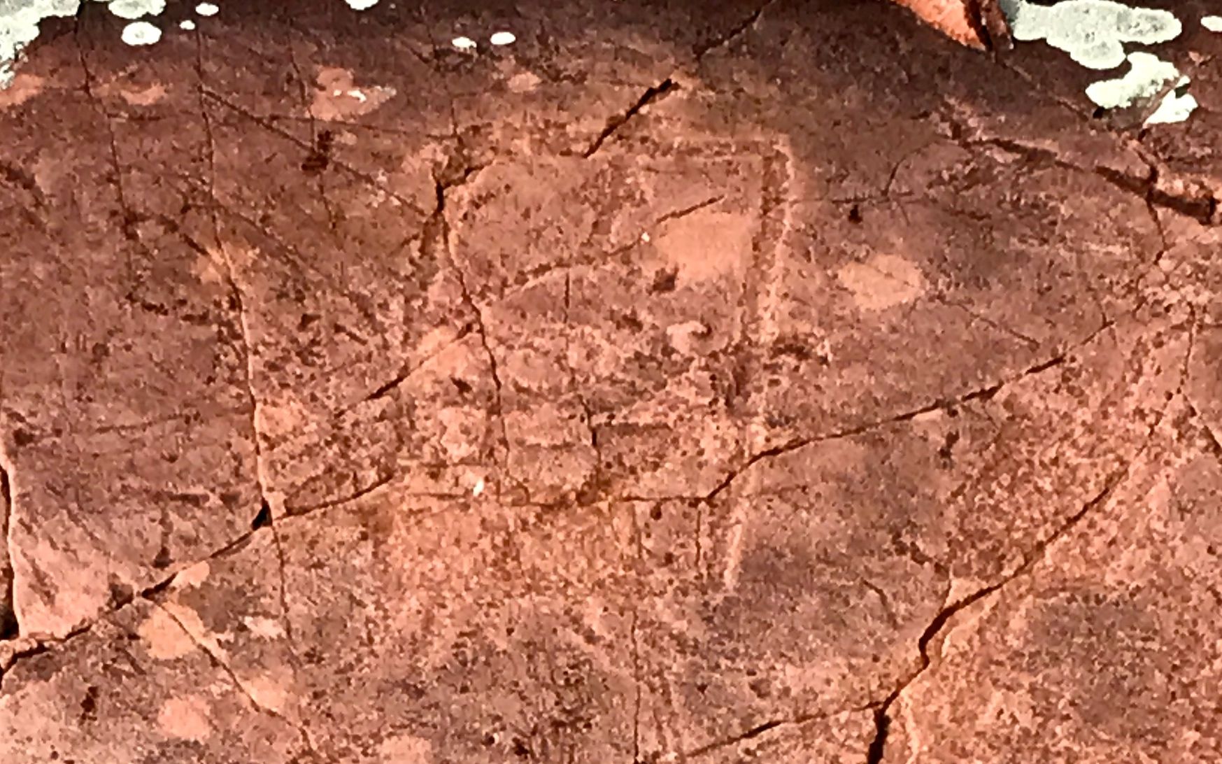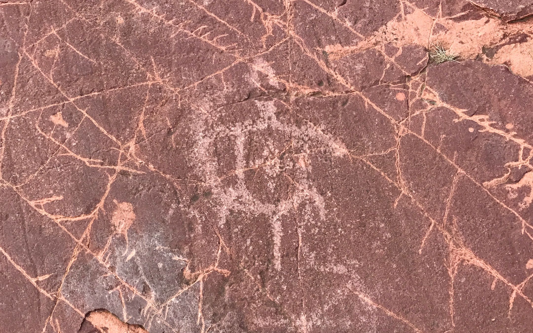 The first time I looked at this glyph, I thought it was a turtle. In reviewing my photo files, I thought it looked more like a warrior with a shield and bow.
