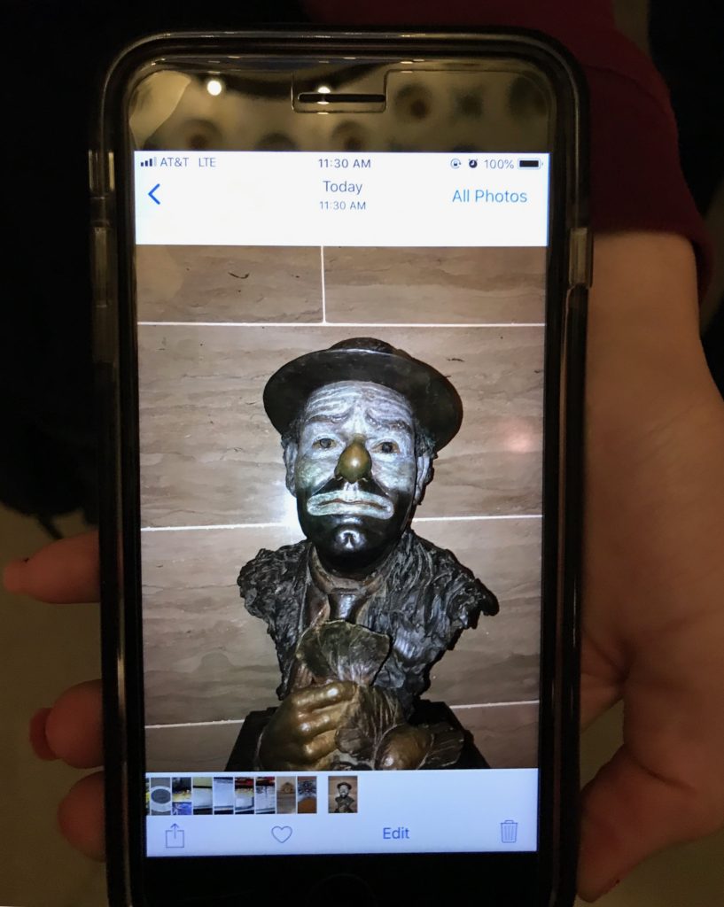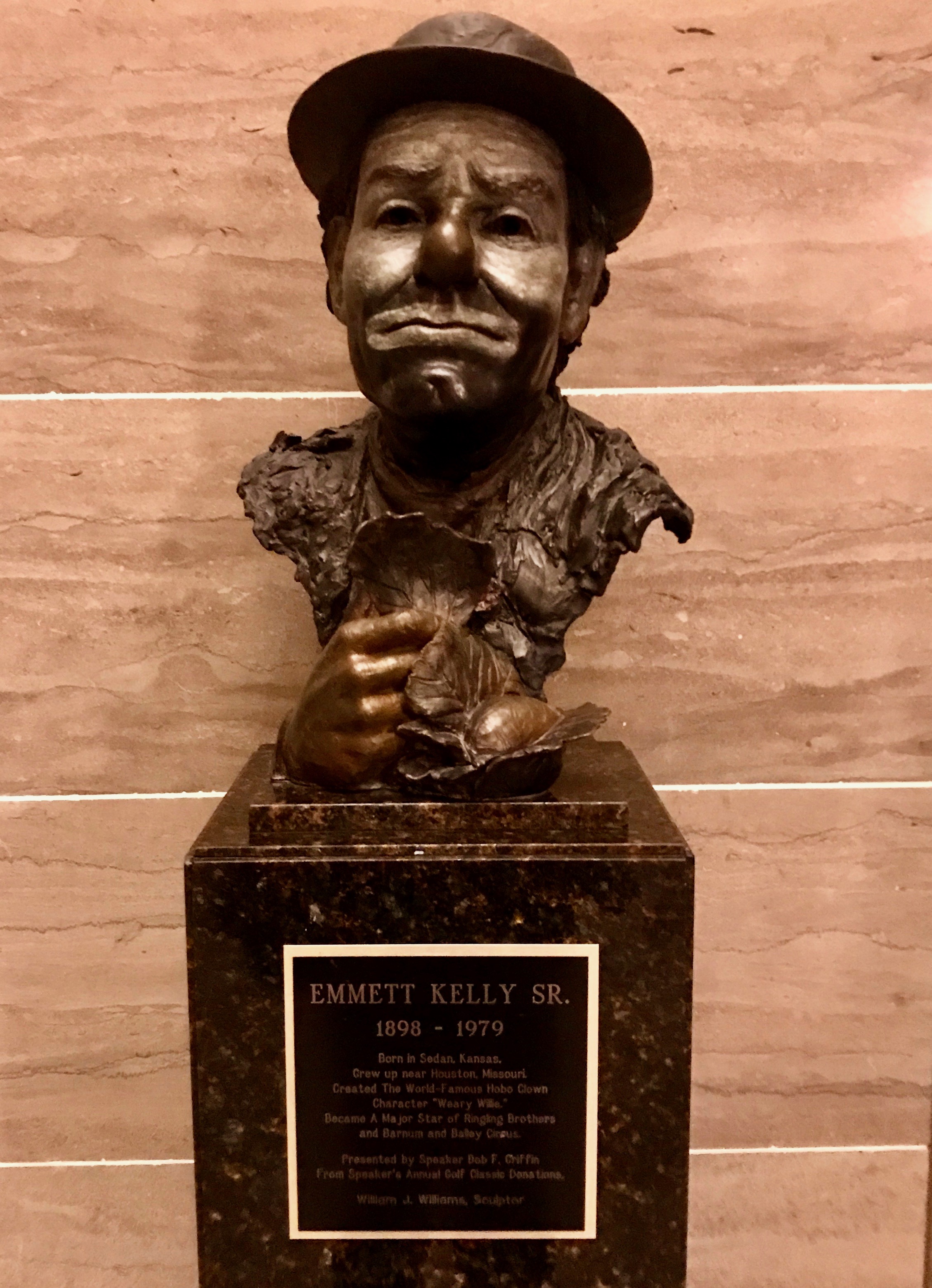 I did not know that Emmet Kelly Sr. was from Missouri, but it appears that they claim him as their own. While he was born in Kansas in 1898, his hometown was Houston, Missouri. His character, based on the hobos of the Depression Era, was known as Weary Willie. Our guide told us that the statue held a secret, if you took a flash photo of it.
