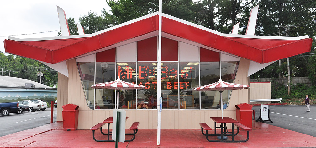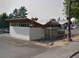 I decided to walk up and see what I could see. Quite frankly, the roofline made me think of fast-food restaurants from the 1960s. That style of roof is known as a folded plate roof. I did a Google search to see if I could find any examples. Here’s a repurposed Neba restaurant.