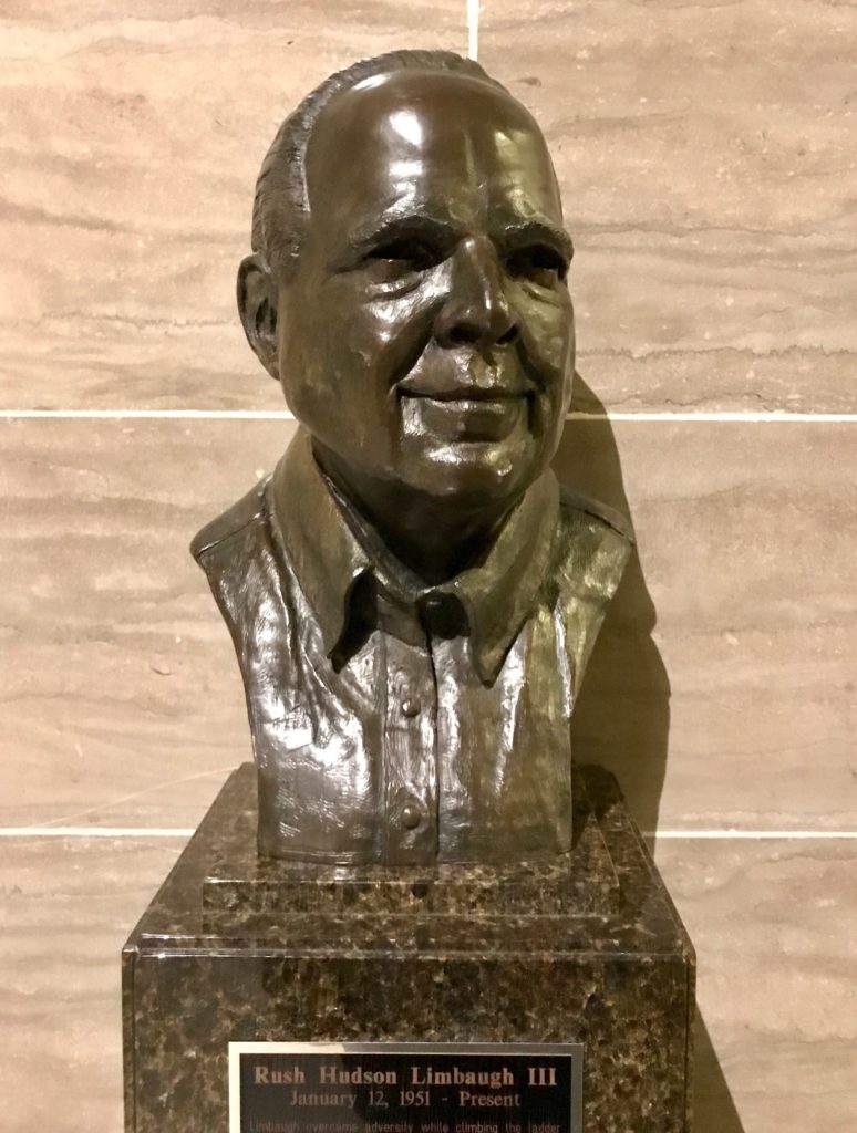 Next is a completely different sort of clown. Rush Limbaugh. The citation honors him for overcoming adversity while climbing the ladder to become the top radio talk show host in the country. I read over his Wikipedia entry. The only adversity I could find was that he dropped out of college. His mother said that, “He flunked everything,” and “he just didn’t seem interested in anything except radio.”