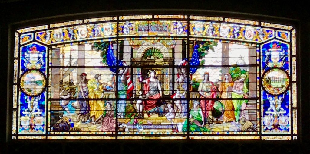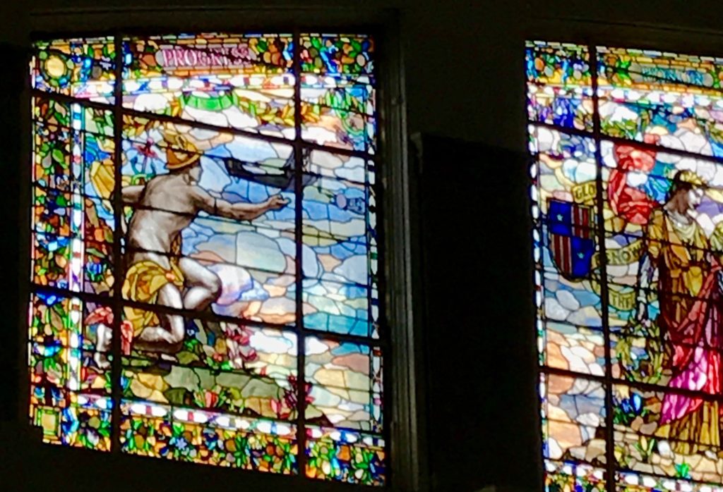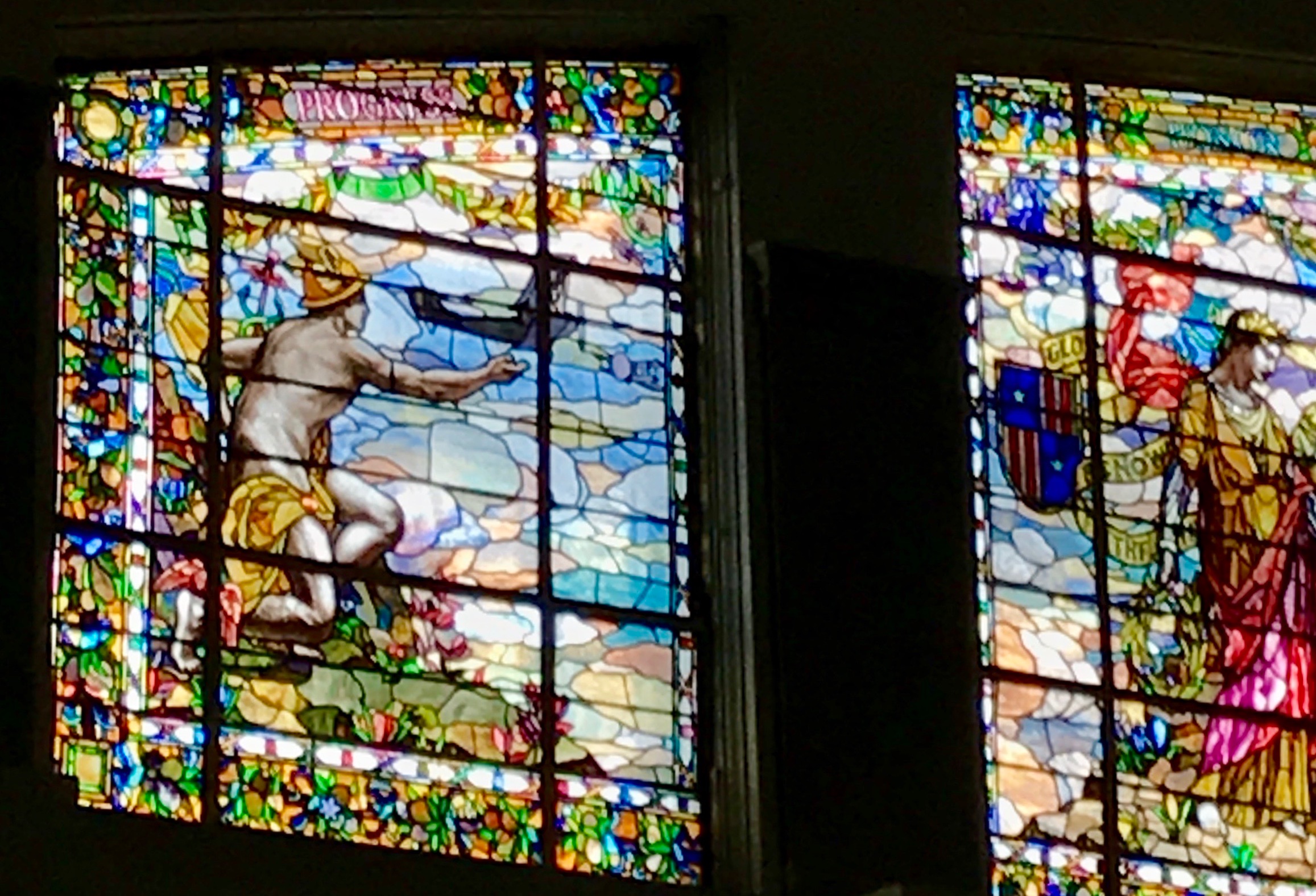 The window immediately above the word PROGRESS shows the world as it was unfolding. From what the guide said, I gathered that the artist was really forward-thinking in his depiction of the airplane. Progress, indeed.