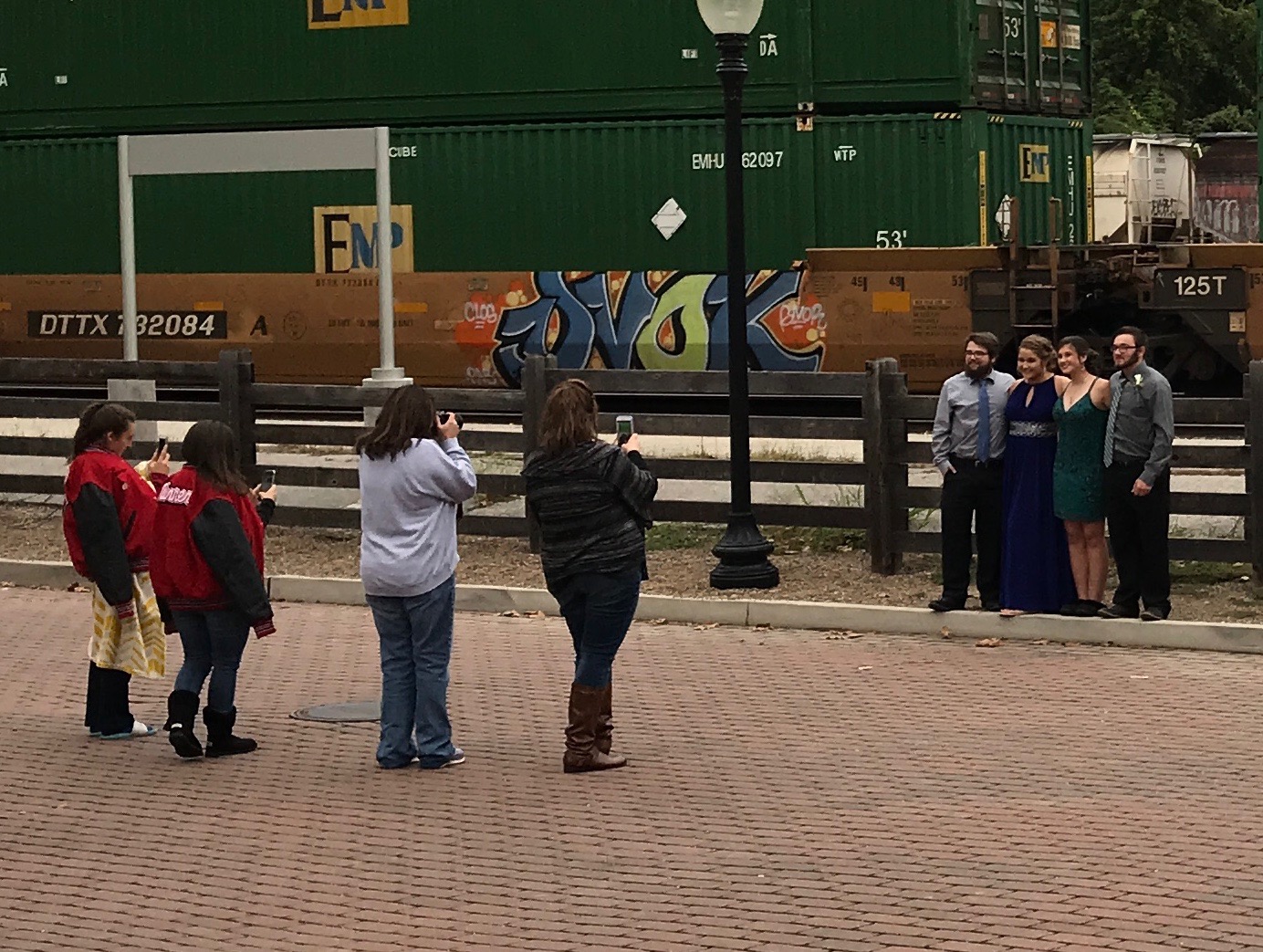 I wonder if it was fall formal season in the high schools. These folks spent several minutes snapping photos of the friends.