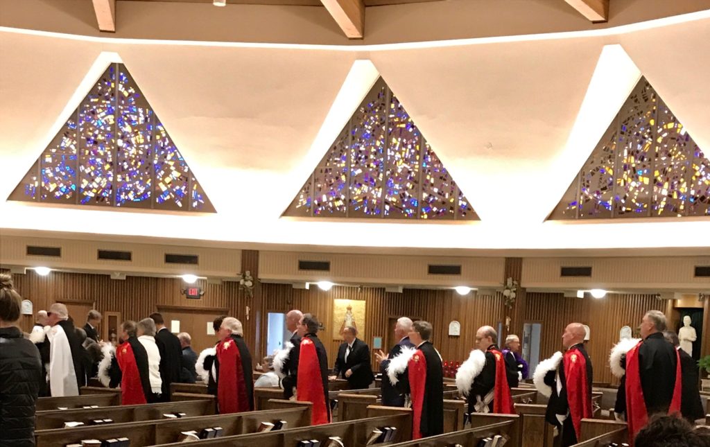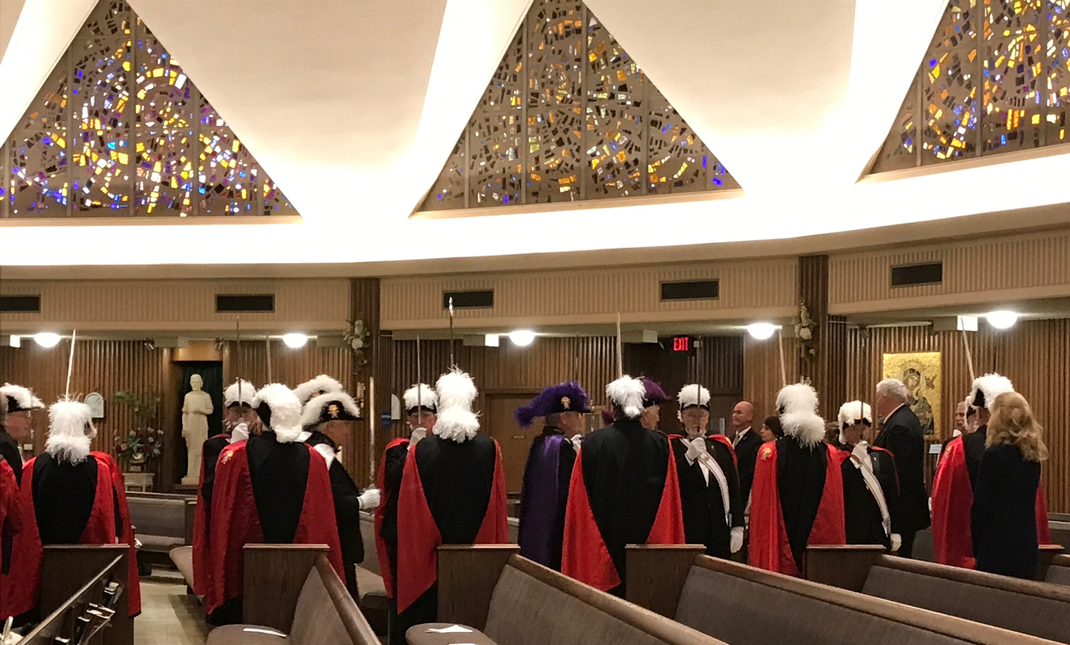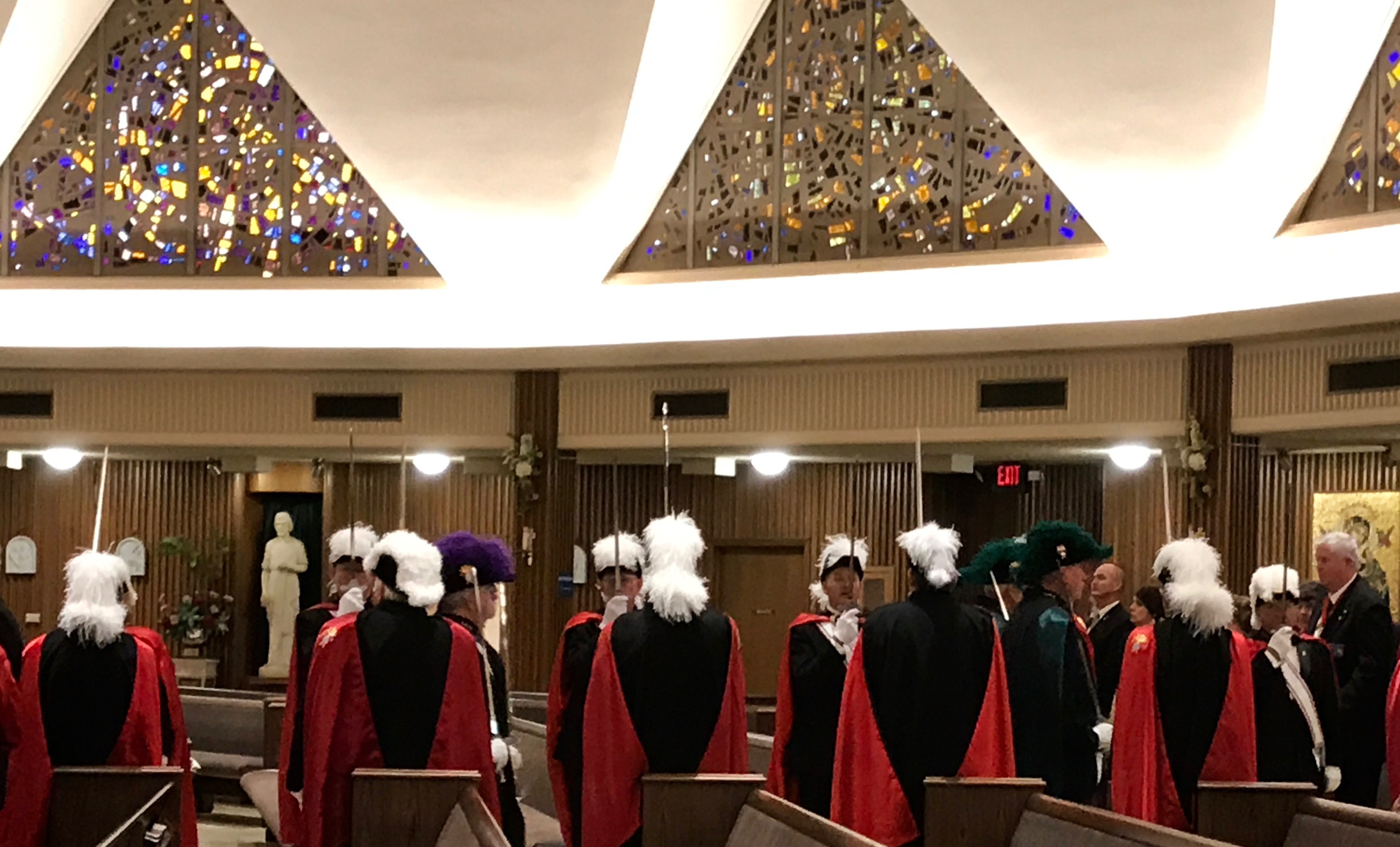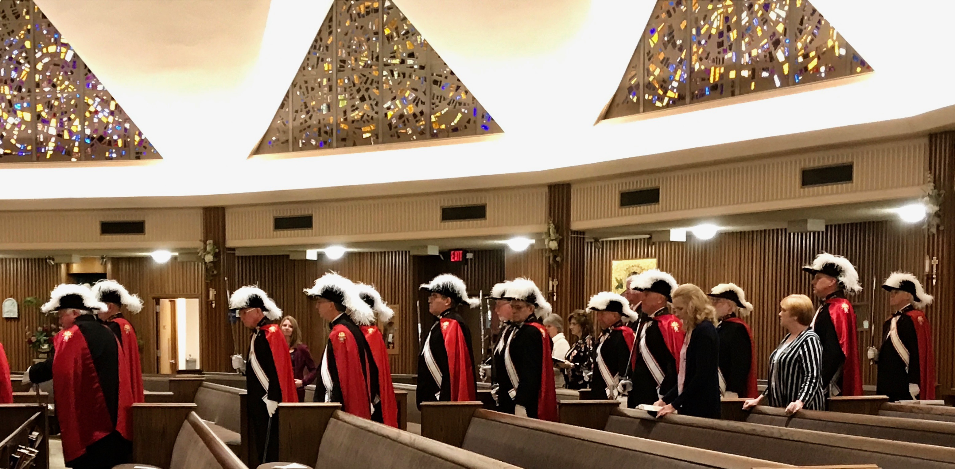 My goodness! I had walked in on a Knights of Columbus mass! I had seen them from time to time at masses in the cathedral in Kalamazoo, but I always felt they were kind of a “secret society,” although if they want to be a secret society, they need to come up with a uniform that is a little more inconspicuous.