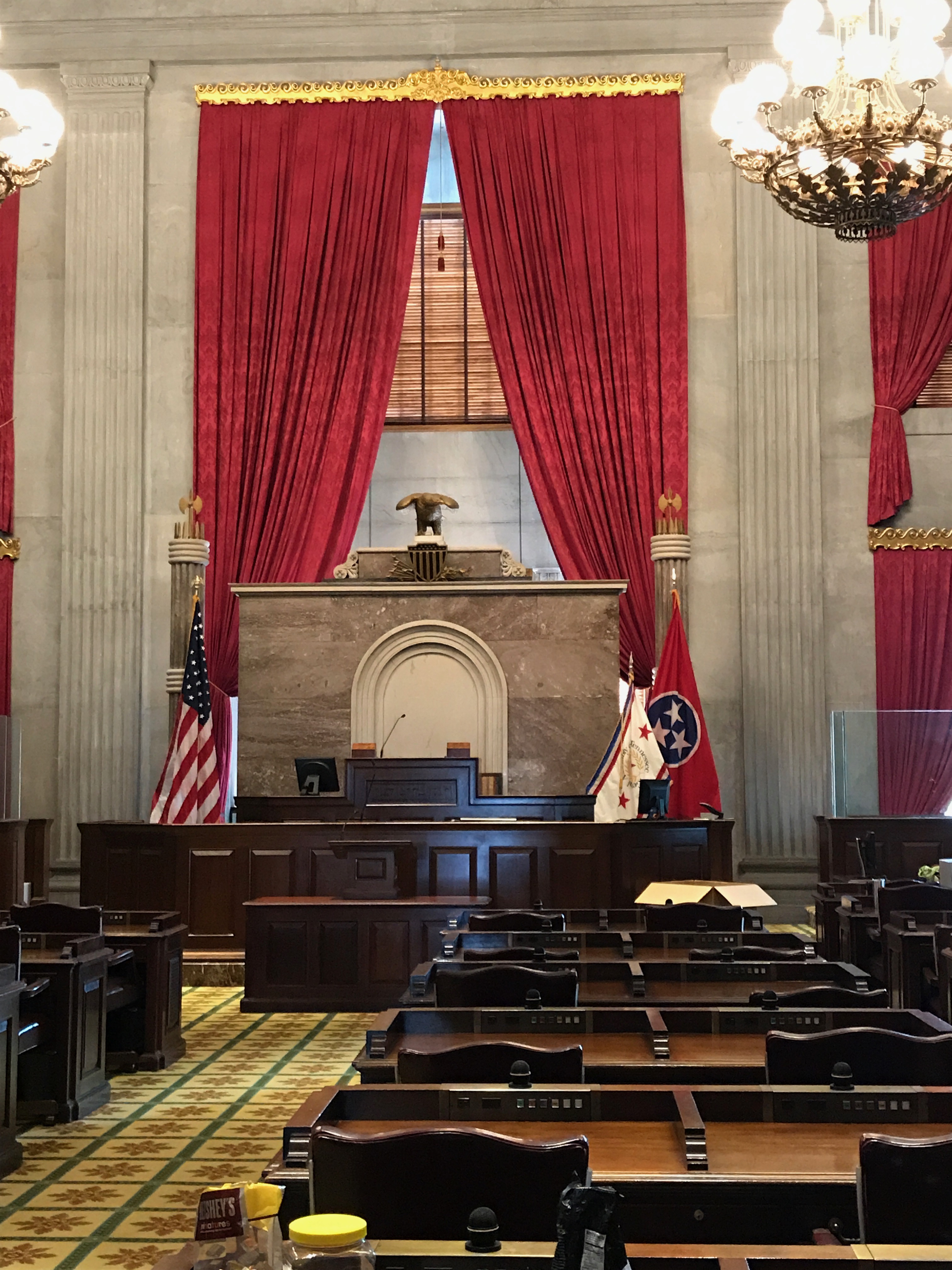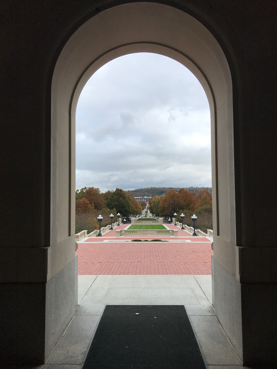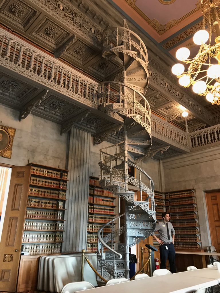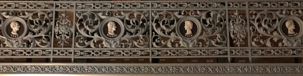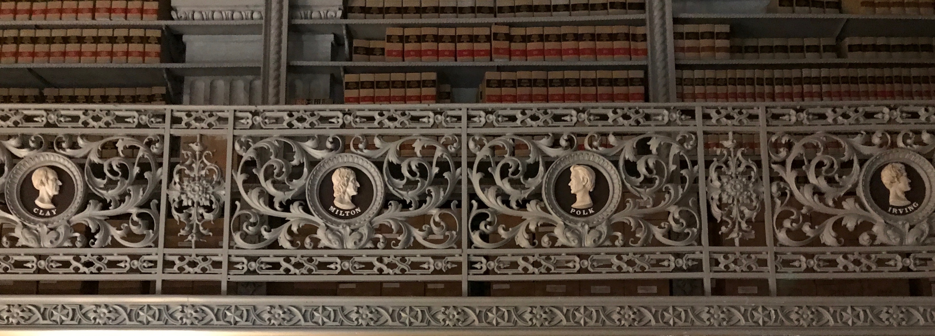 Although this library is modest in comparison with Tennessee’s capitol library, there was this hint of metallic grace. I wonder why the frame is empty?