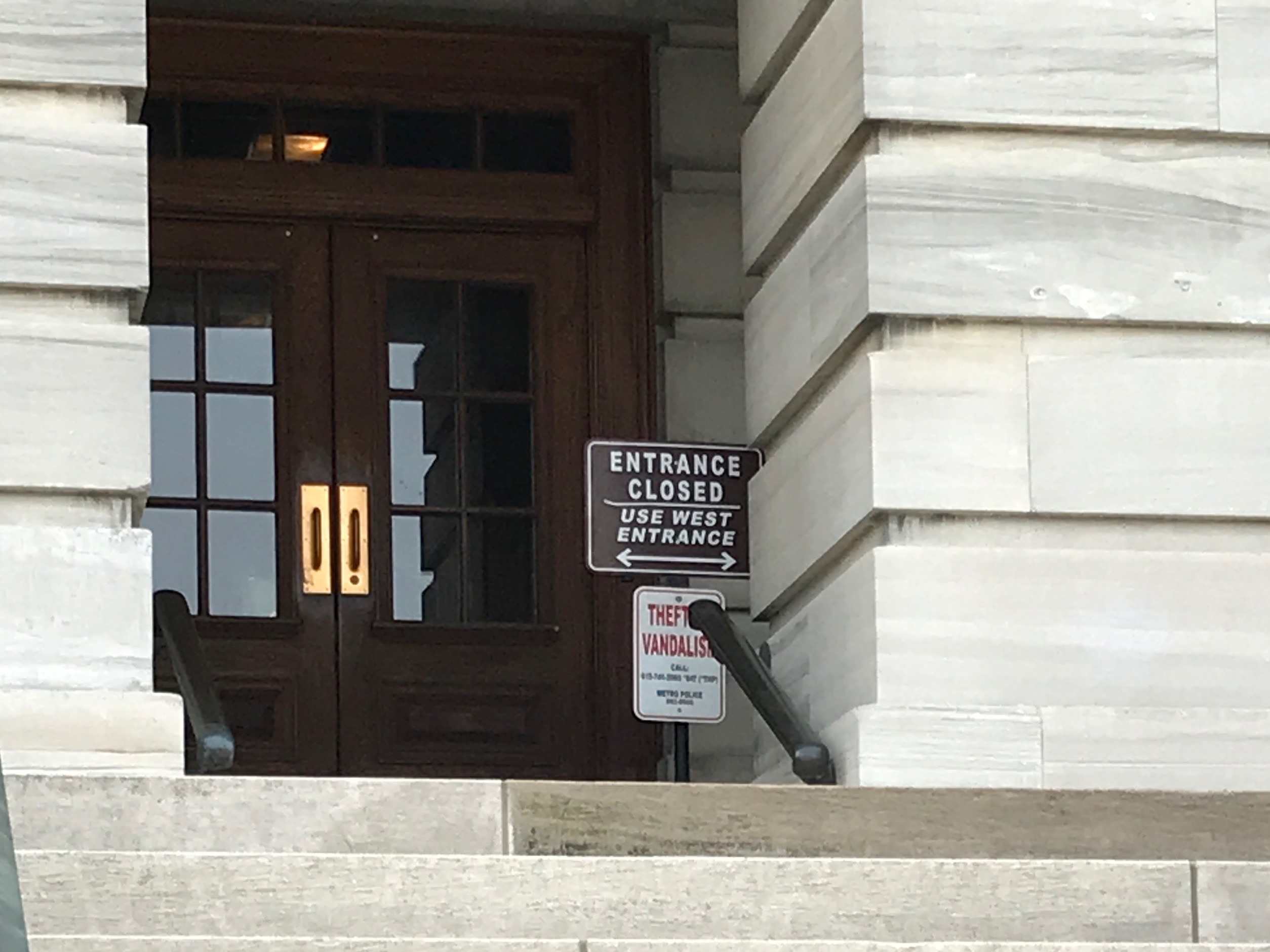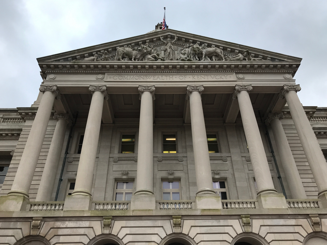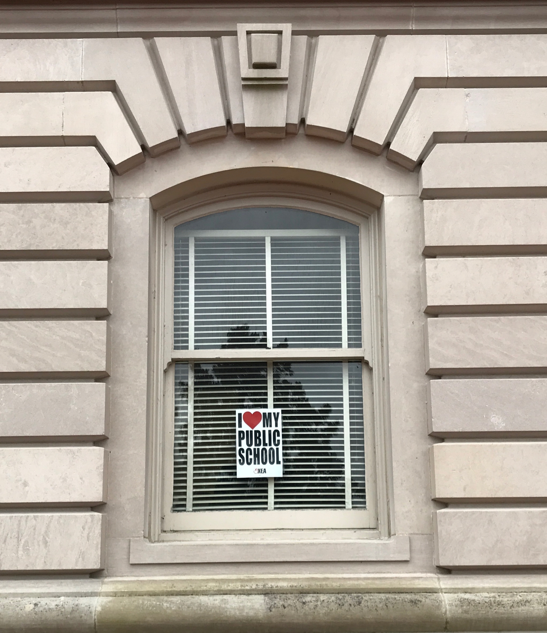 I saw this sign posted in a window as I walked around the building. I wonder if there is a connection to Bevin’s ouster and public employees?