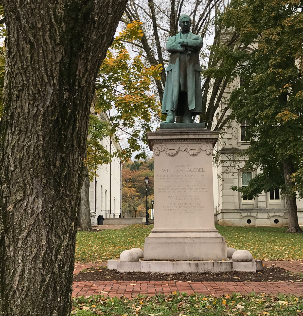 This statue is of William Goebel, who was elected in the 1899 governor race.