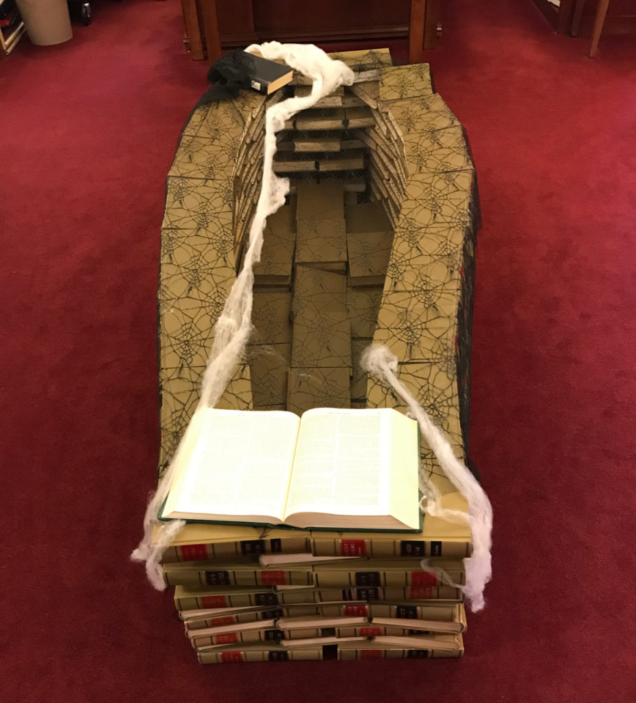 Just in case you are curious, this is the book that is open on the end of the coffin.