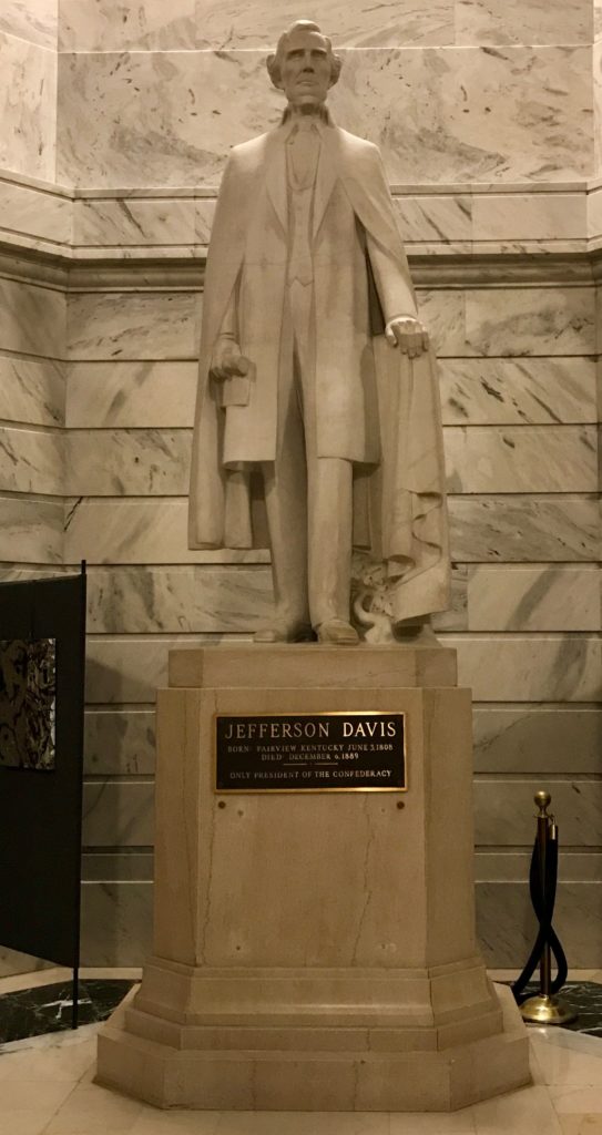 Then, there is Jefferson Davis. Born in Fairview, Kentucky, he moved at an early age to Mississippi. He is honored for two things: being born in Kentucky and being the only president of the Confederacy. Seems like just maybe they could have found a woman to honor somewhere in Kentucky’s history.